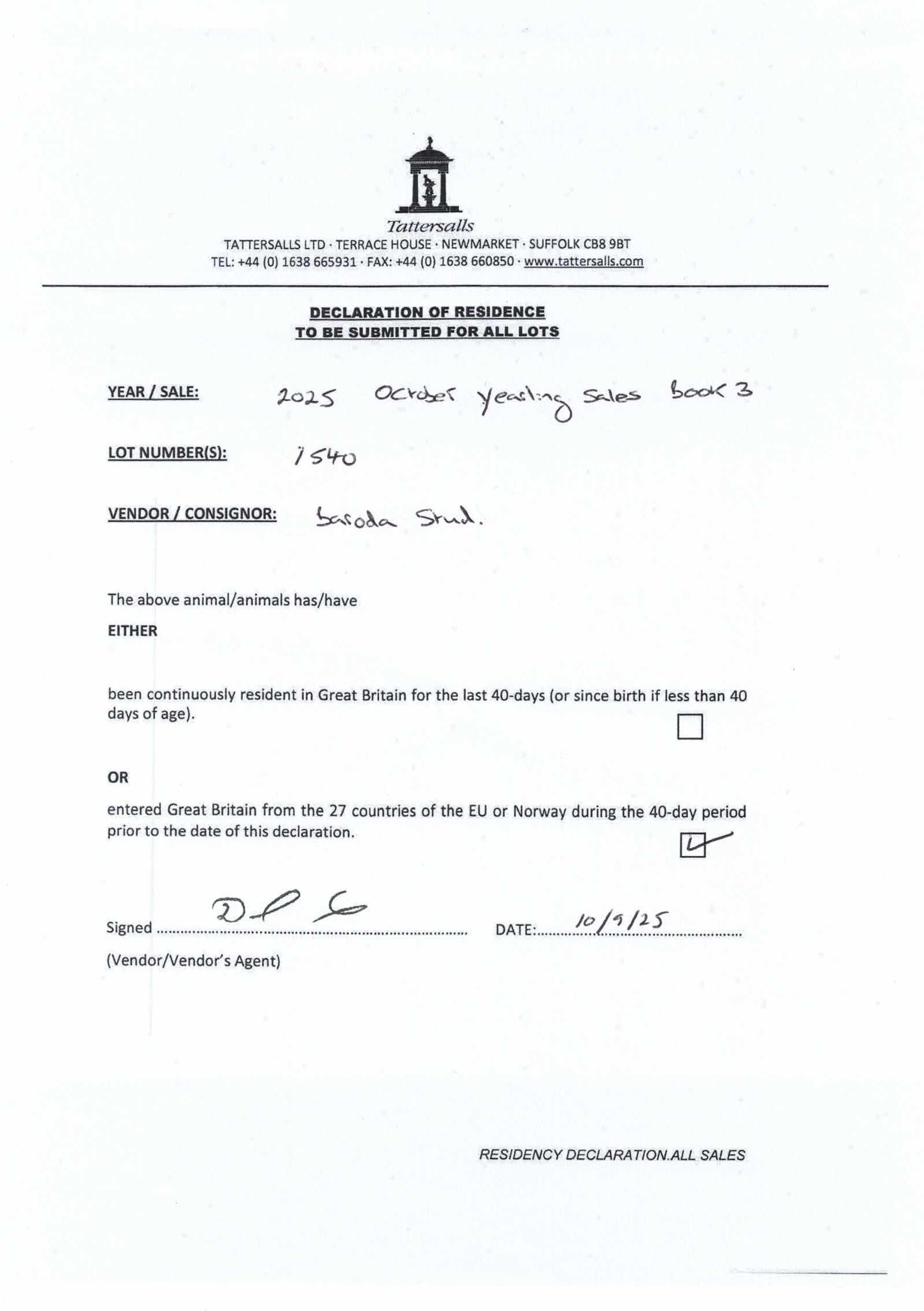 Consignor: Baroda Stud, Ireland