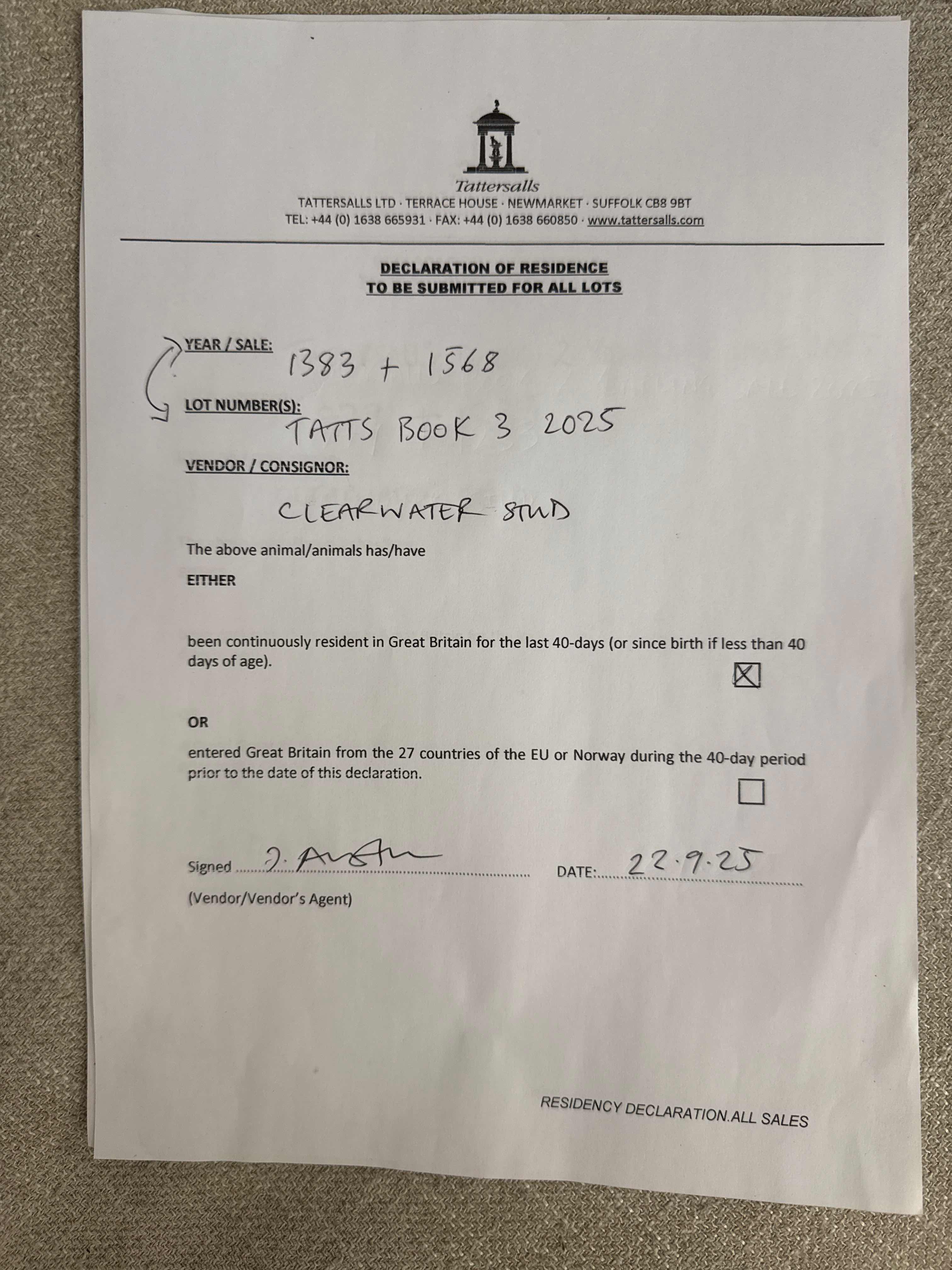 Consignor: Clearwater Stud