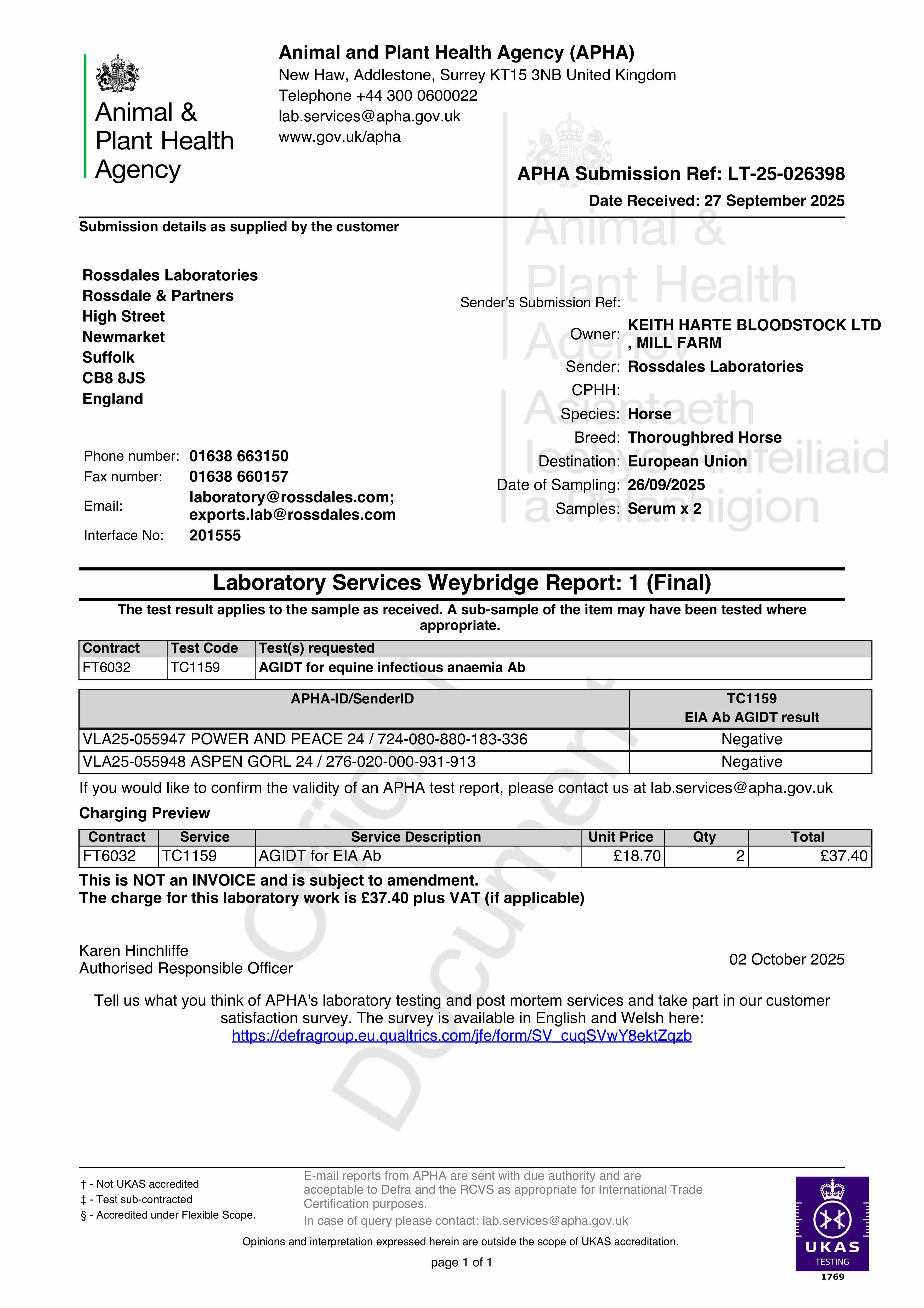 Al Wukair (IRE) / Power And Peace (IRE) B.C. (UNK)