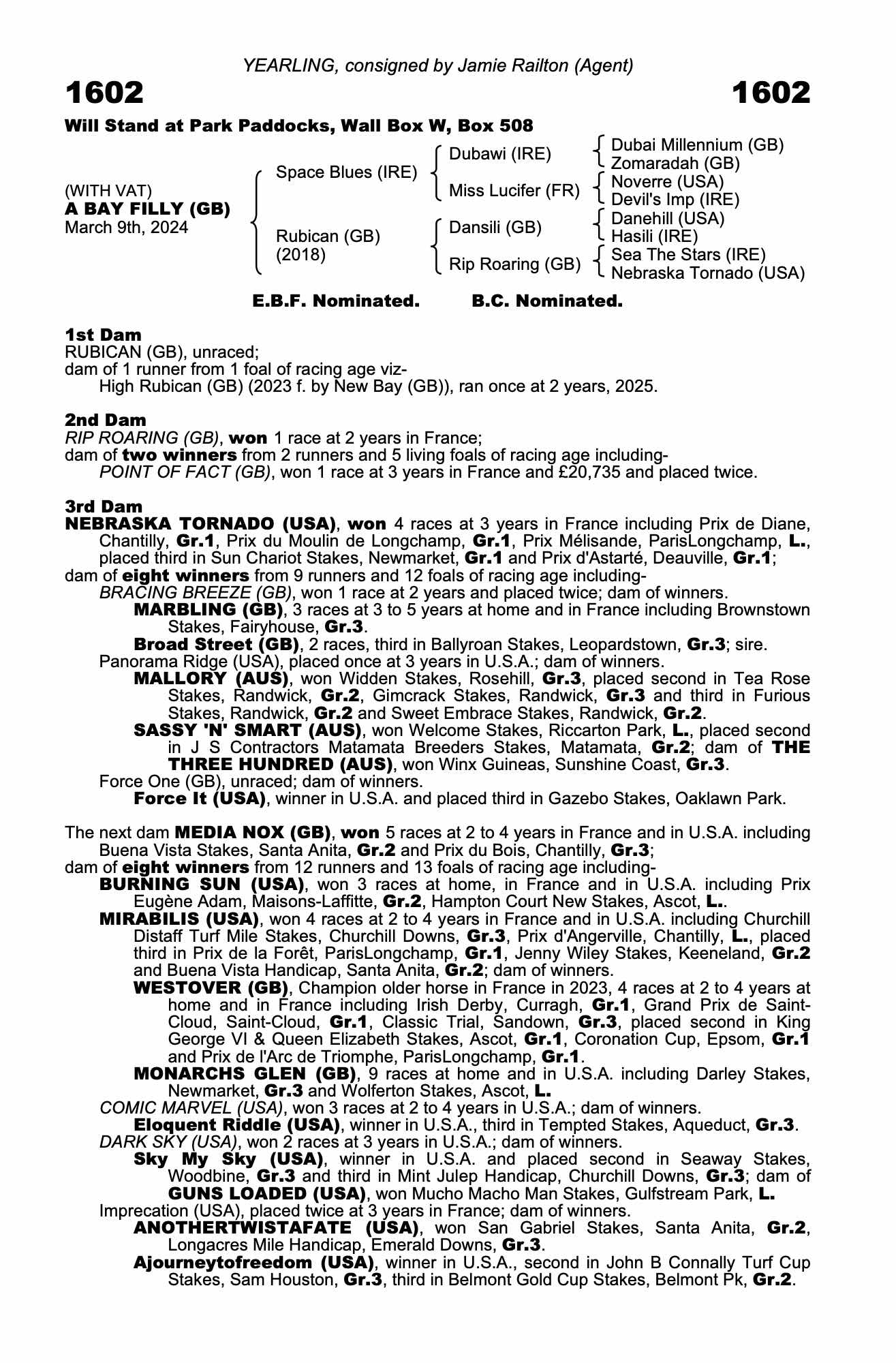 Lot 1602 Space Blues (IRE) /Rubican (GB) B.F. (GB)