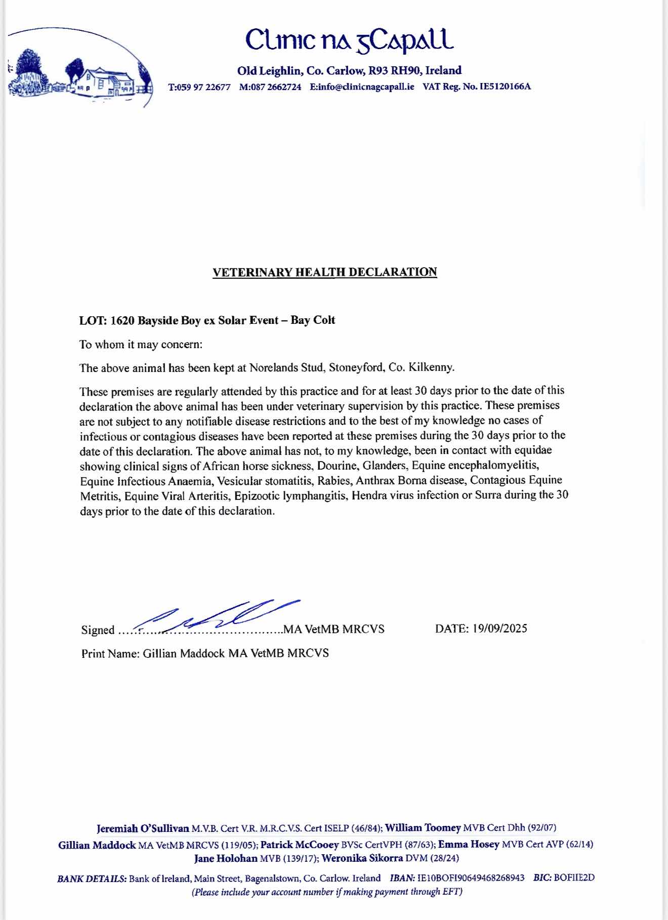 Consignor: Norelands, Ireland