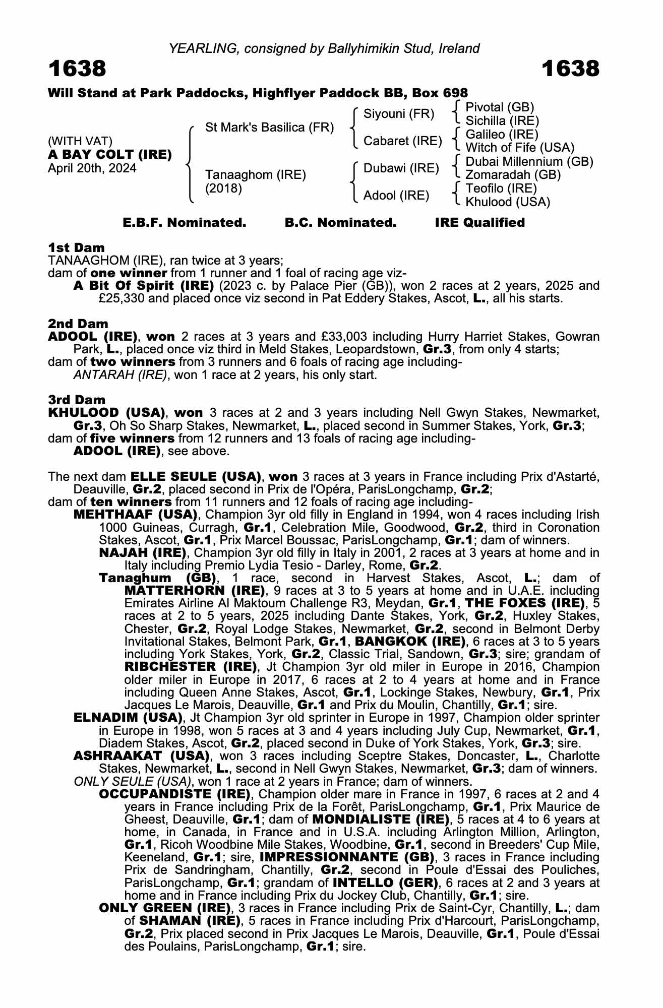 Consignor: Ballyhimikin Stud, Ireland