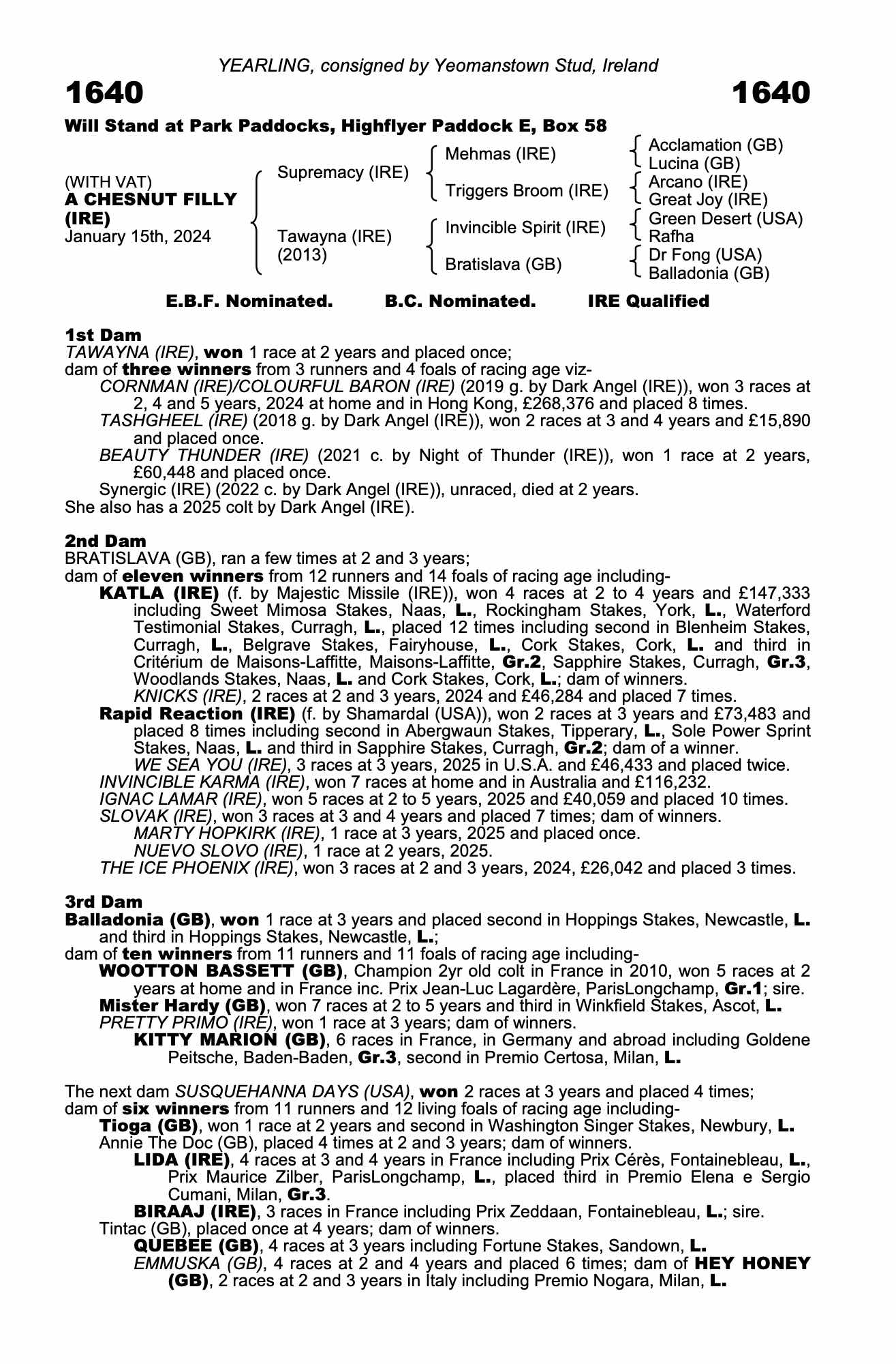 Consignor: Yeomanstown Stud, Ireland