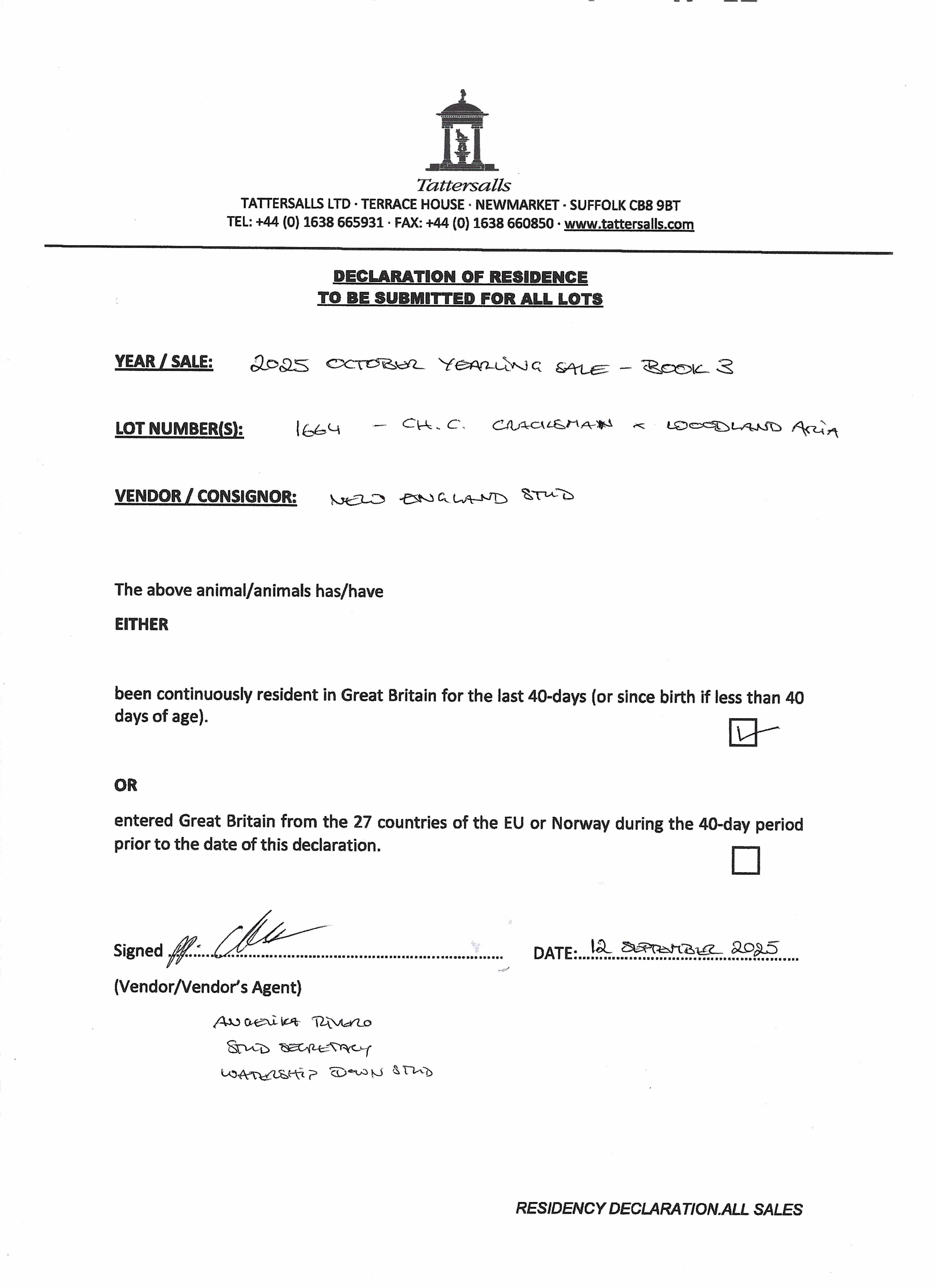February Sale 2026 lot 43 C. 2025, New England Stud=>Hoskins & Hegarty 6,500 gns