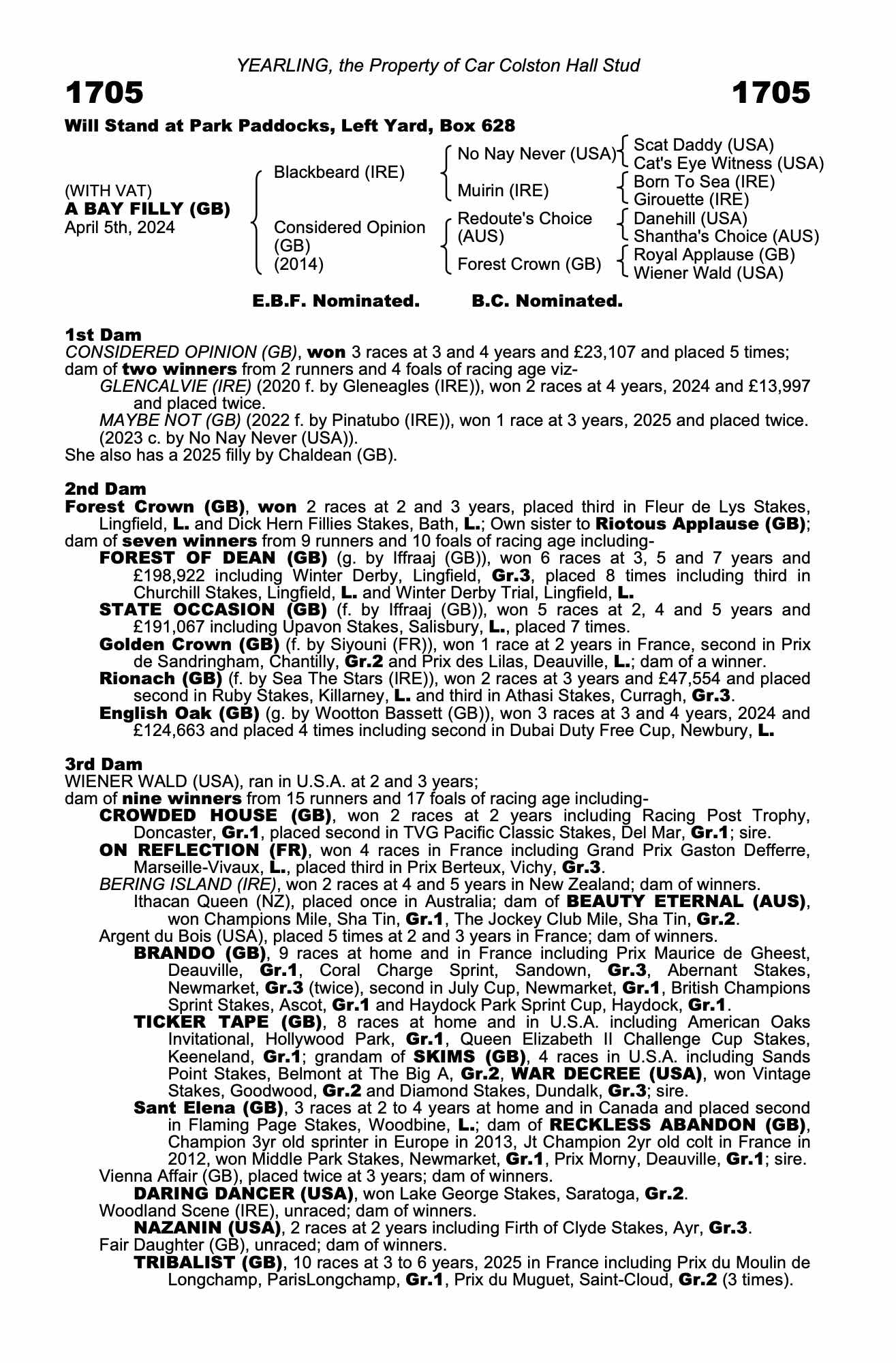Consignor: Car Colston Hall Stud