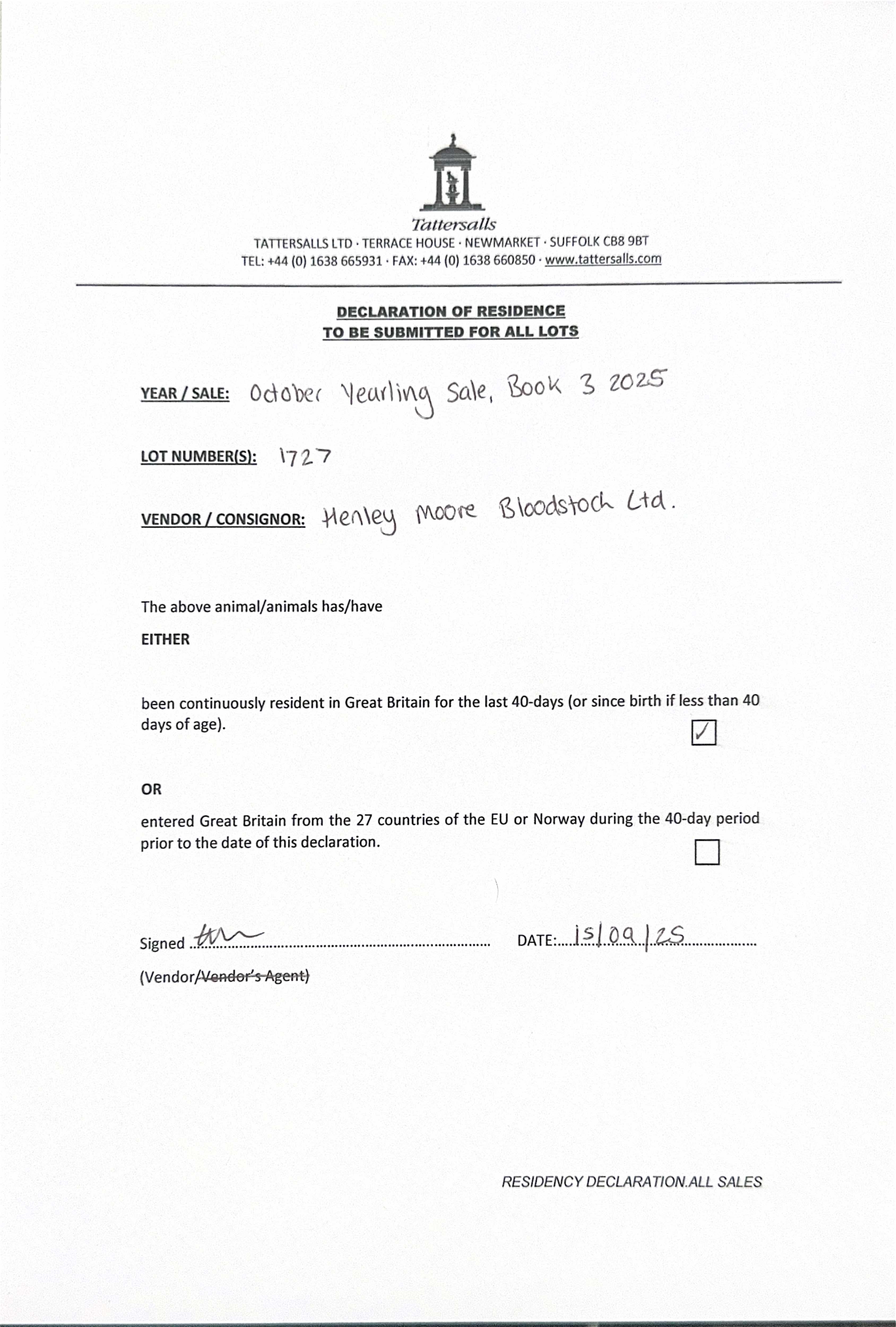 Consignor: Henley Moore Bloodstock Ltd.
