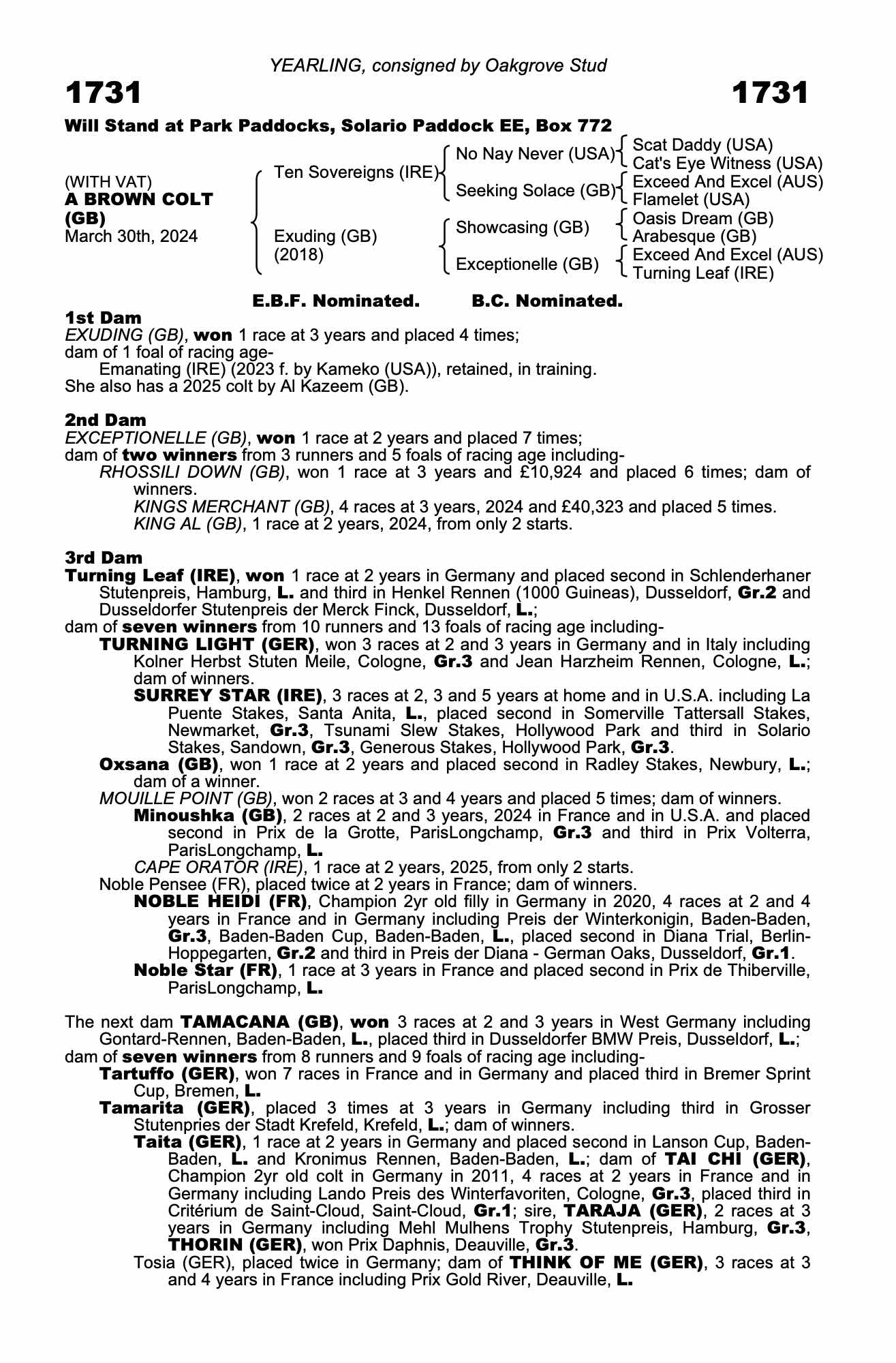 Consignor: Oakgrove Stud