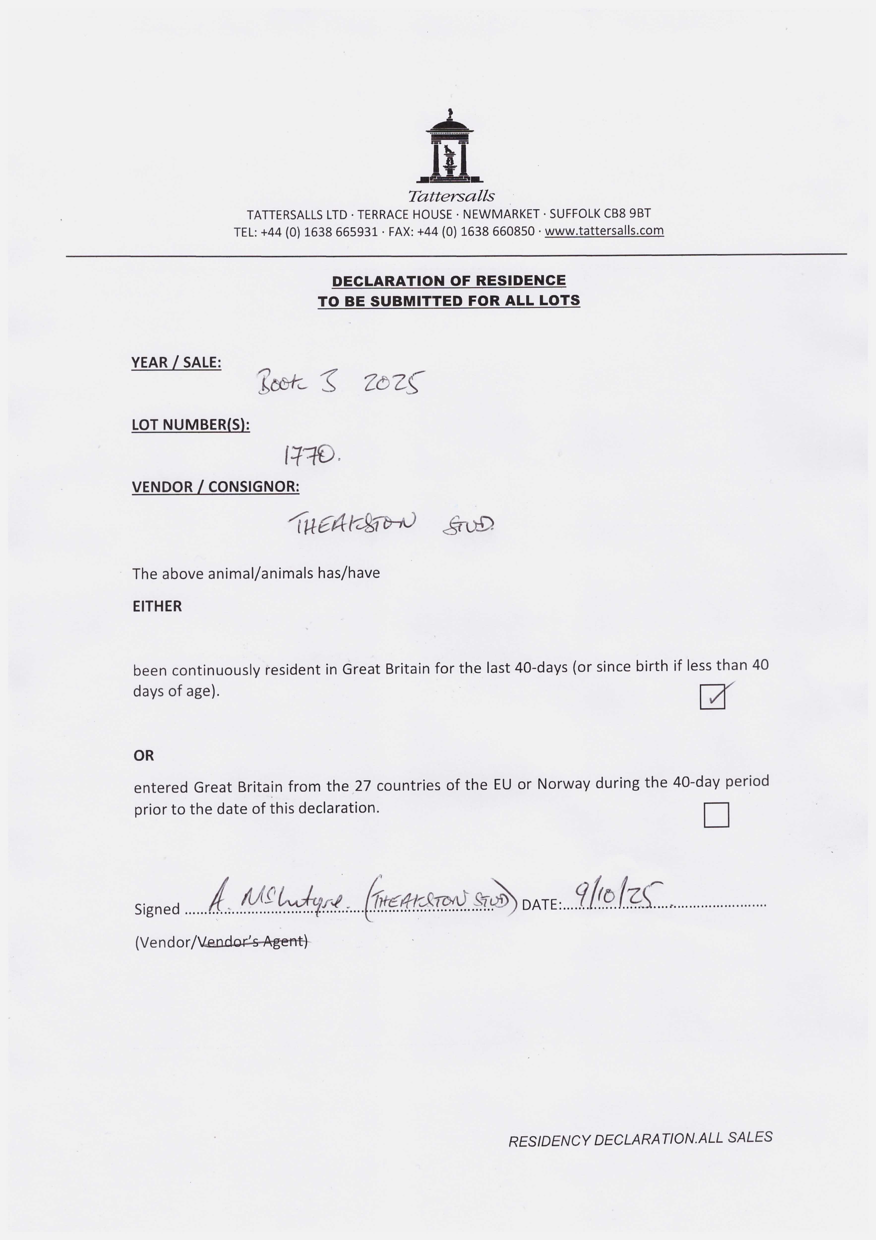 December Foal Sale 2025 lot 681 F. by Palace Pier (GB) 2025, Theakston Stud=>Woodside 15,000 gns