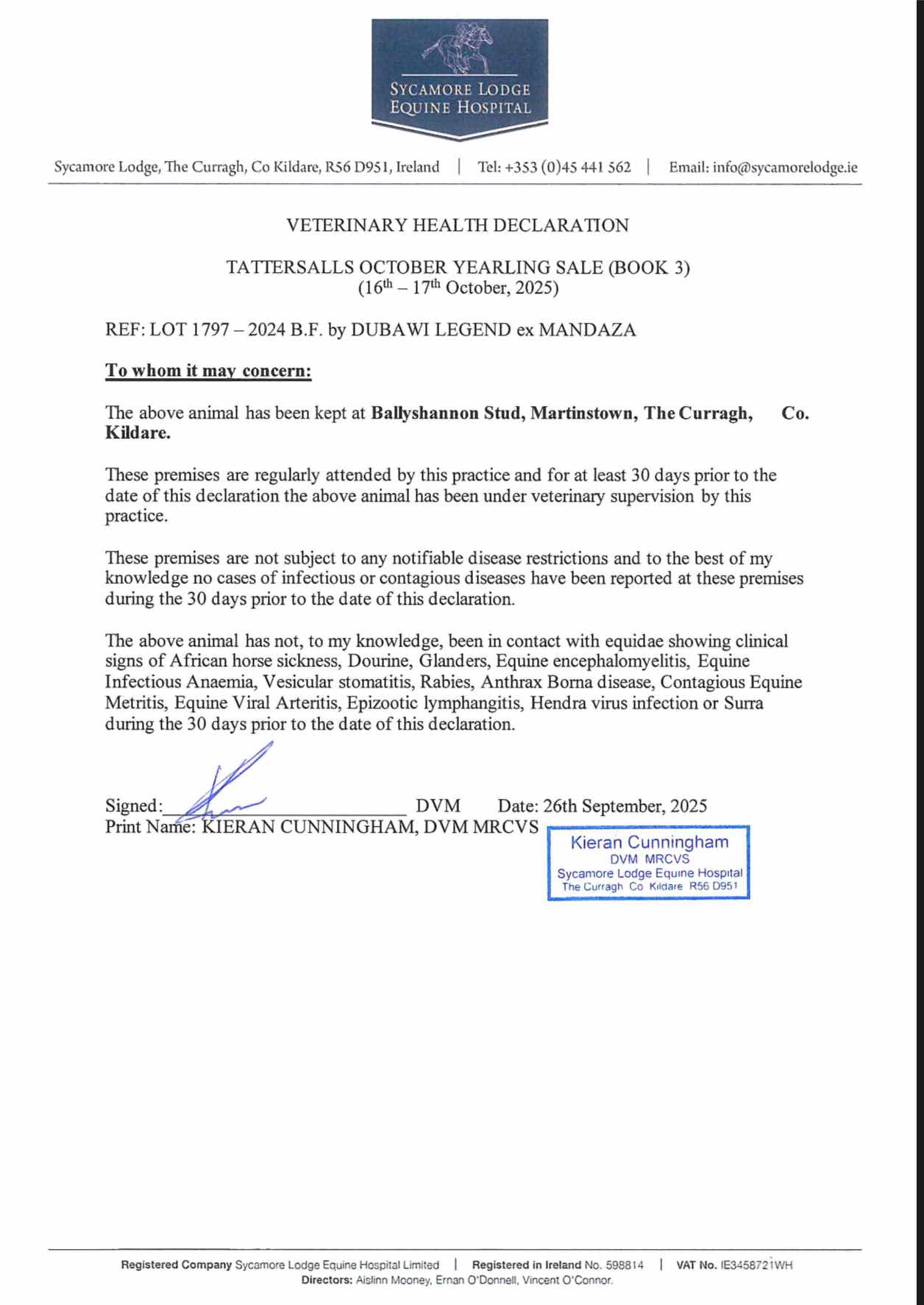 Consignor: Ridge Manor Stables, Ireland (Agent)
