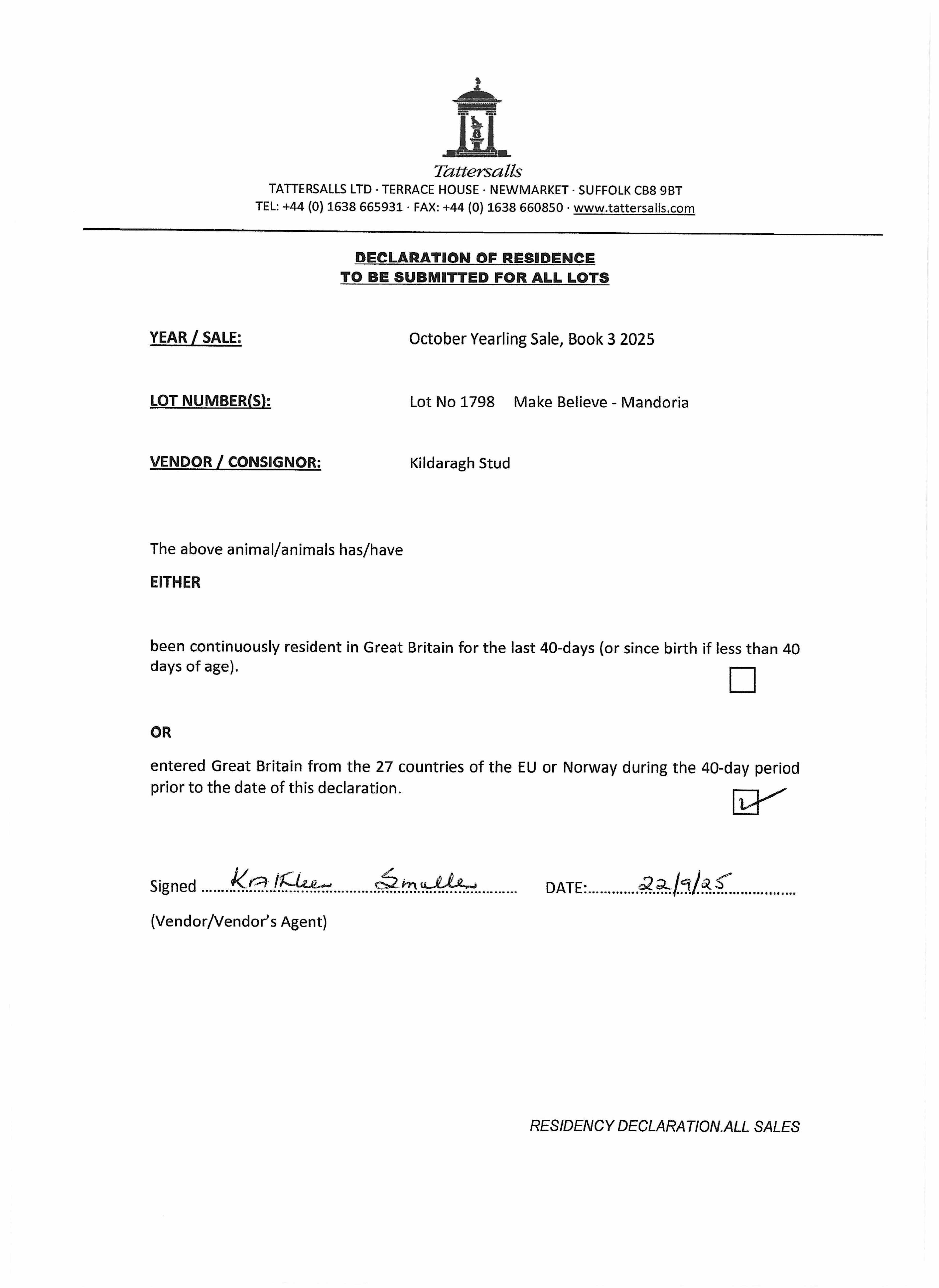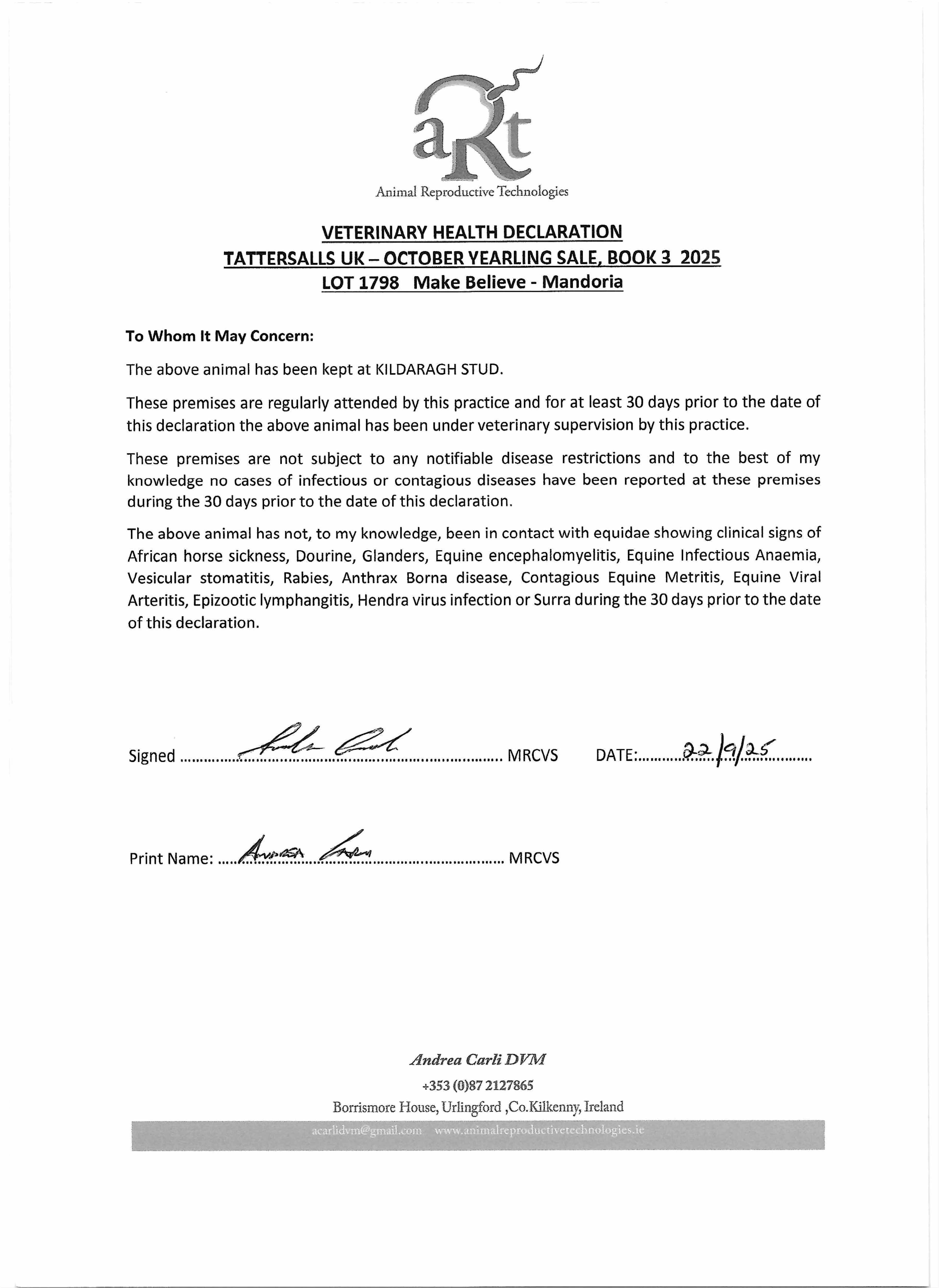 Consignor: Kildaragh Stud, Ireland
