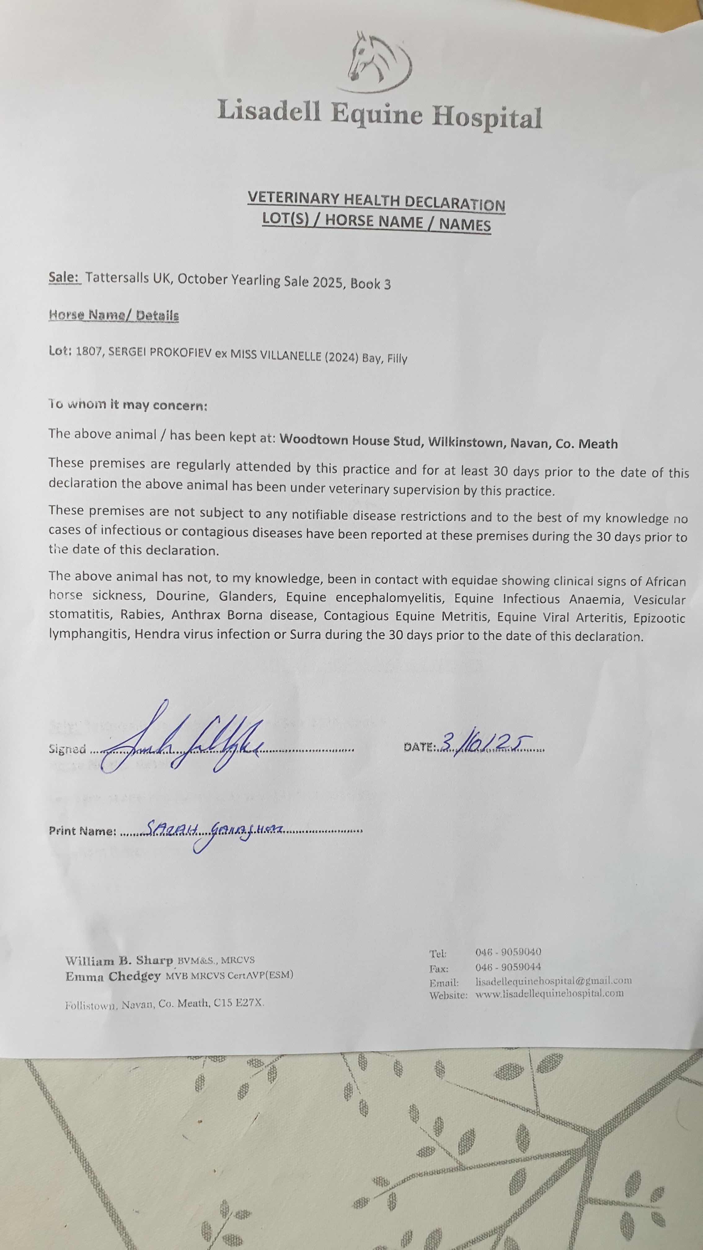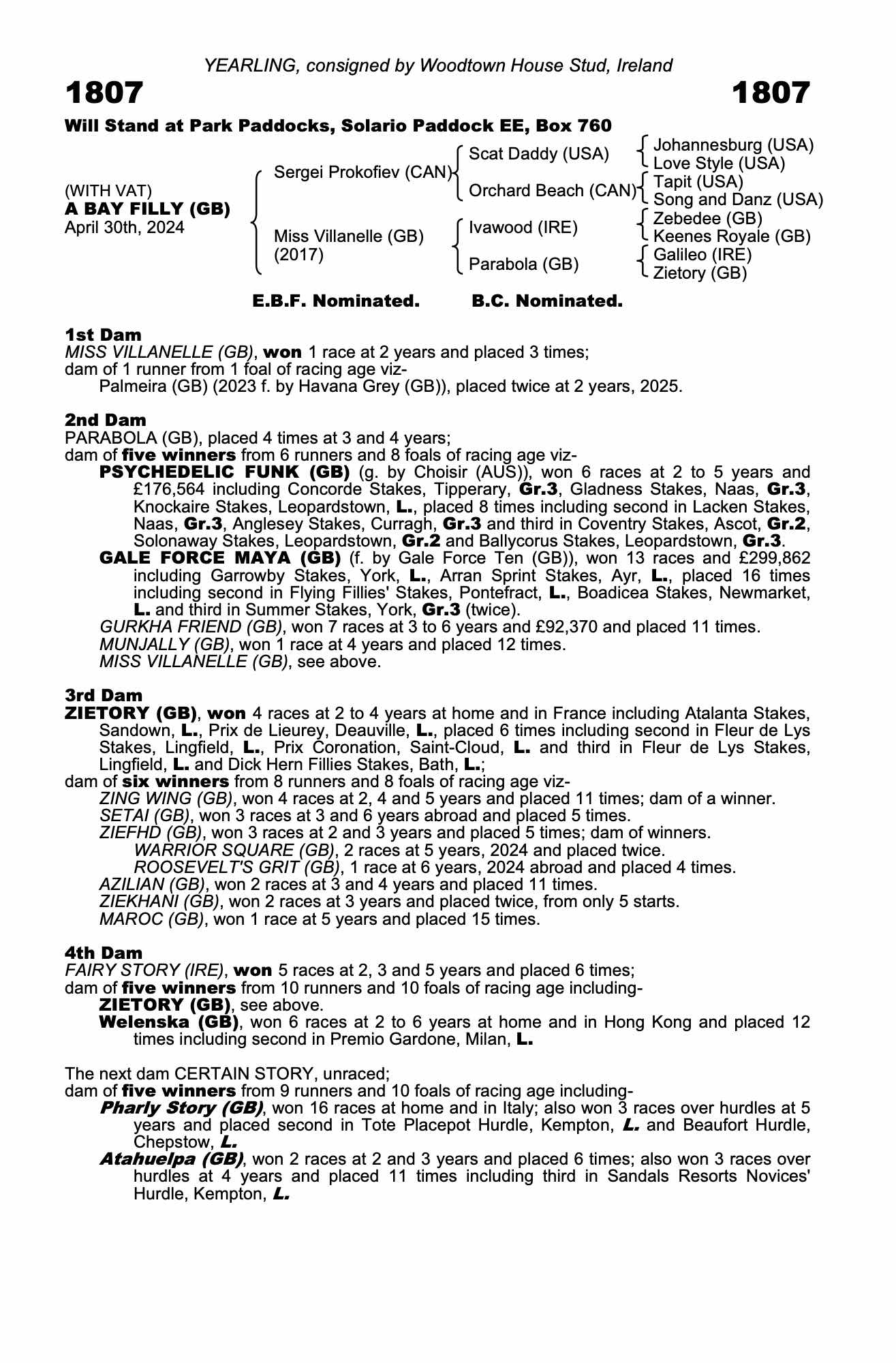 Lot 1807 Sergei Prokofiev (CAN) /Miss Villanelle (GB) B.F. (GB)