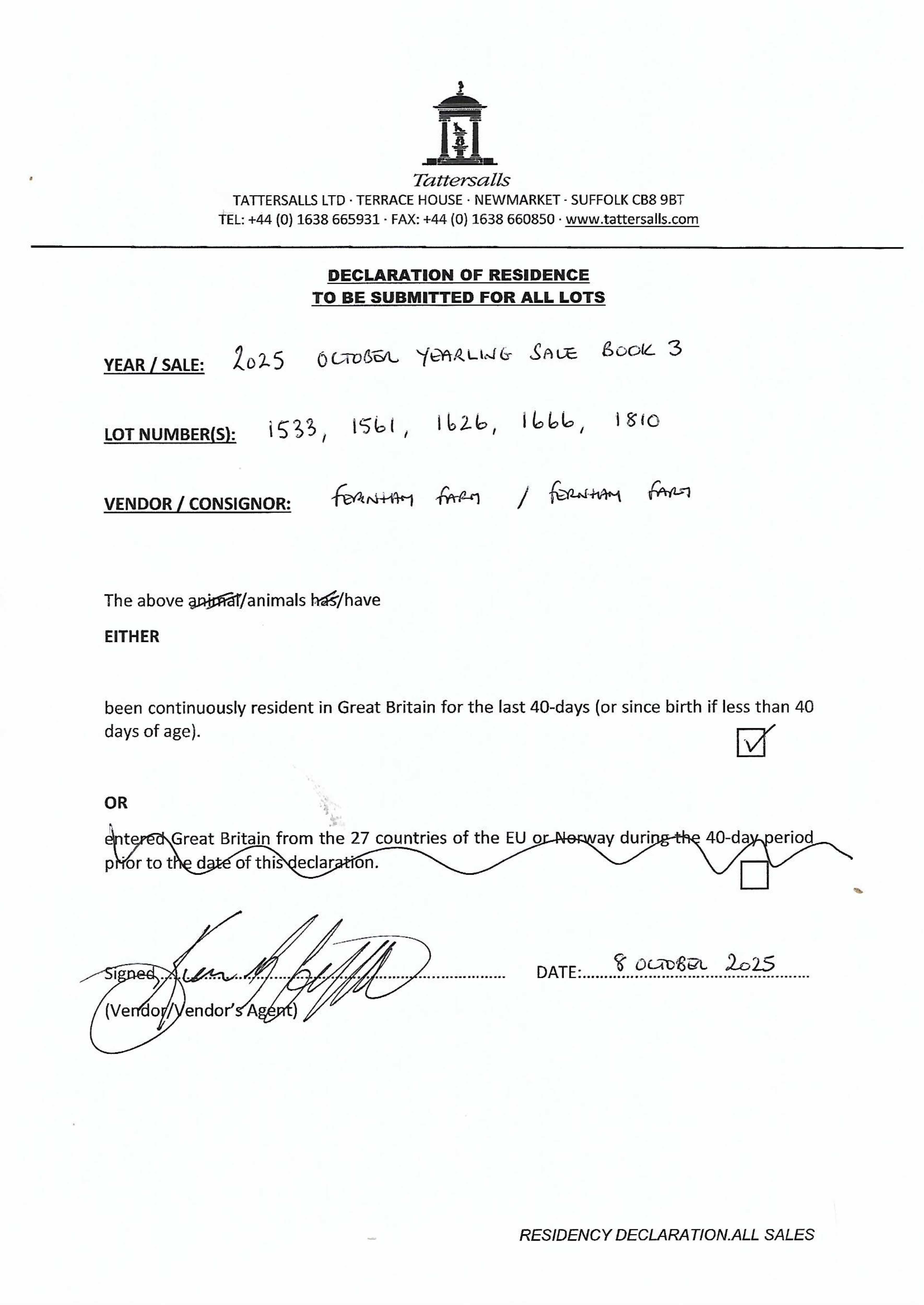 Consignor: Fernham Farm