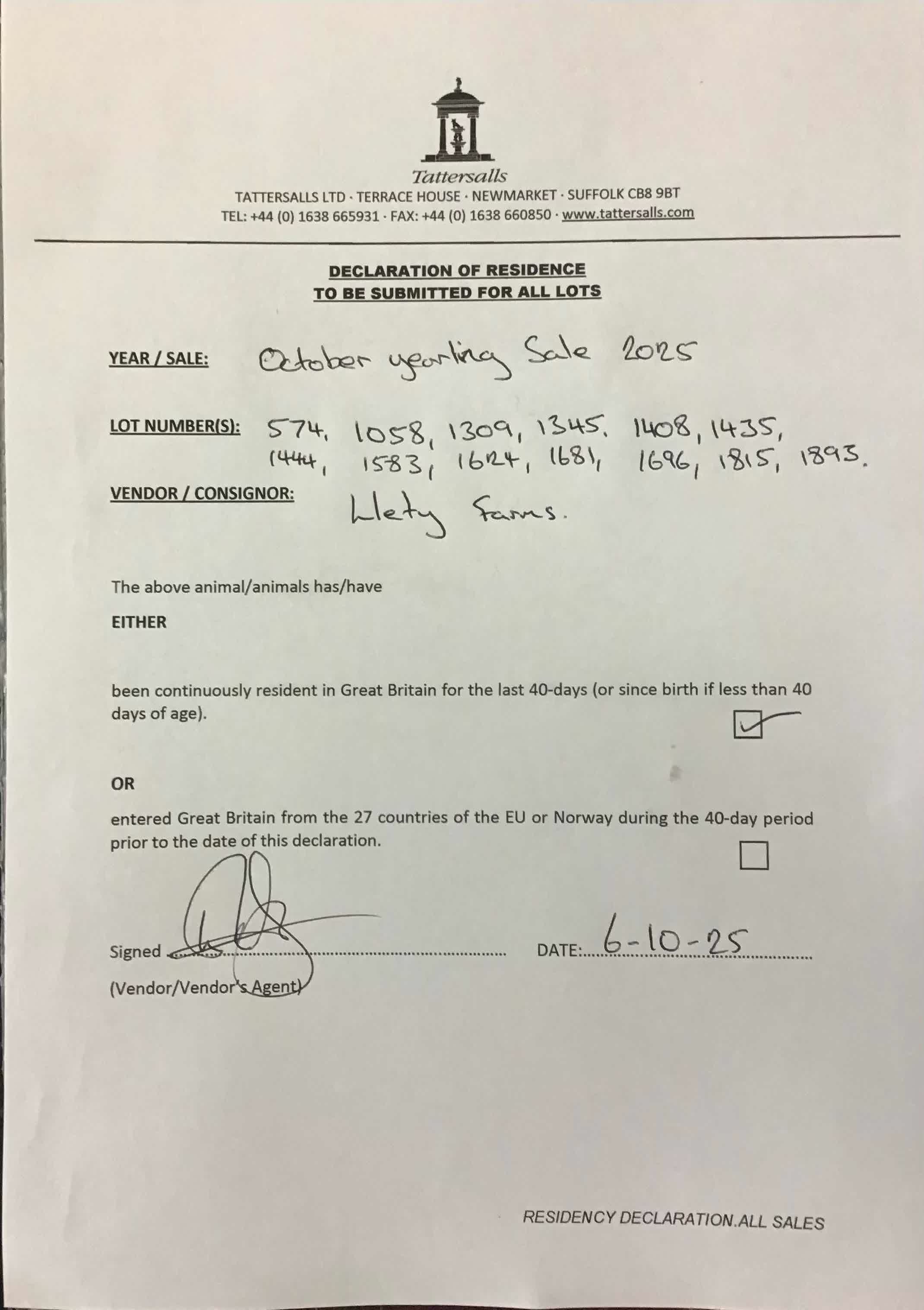 Consignor: Llety Farms
