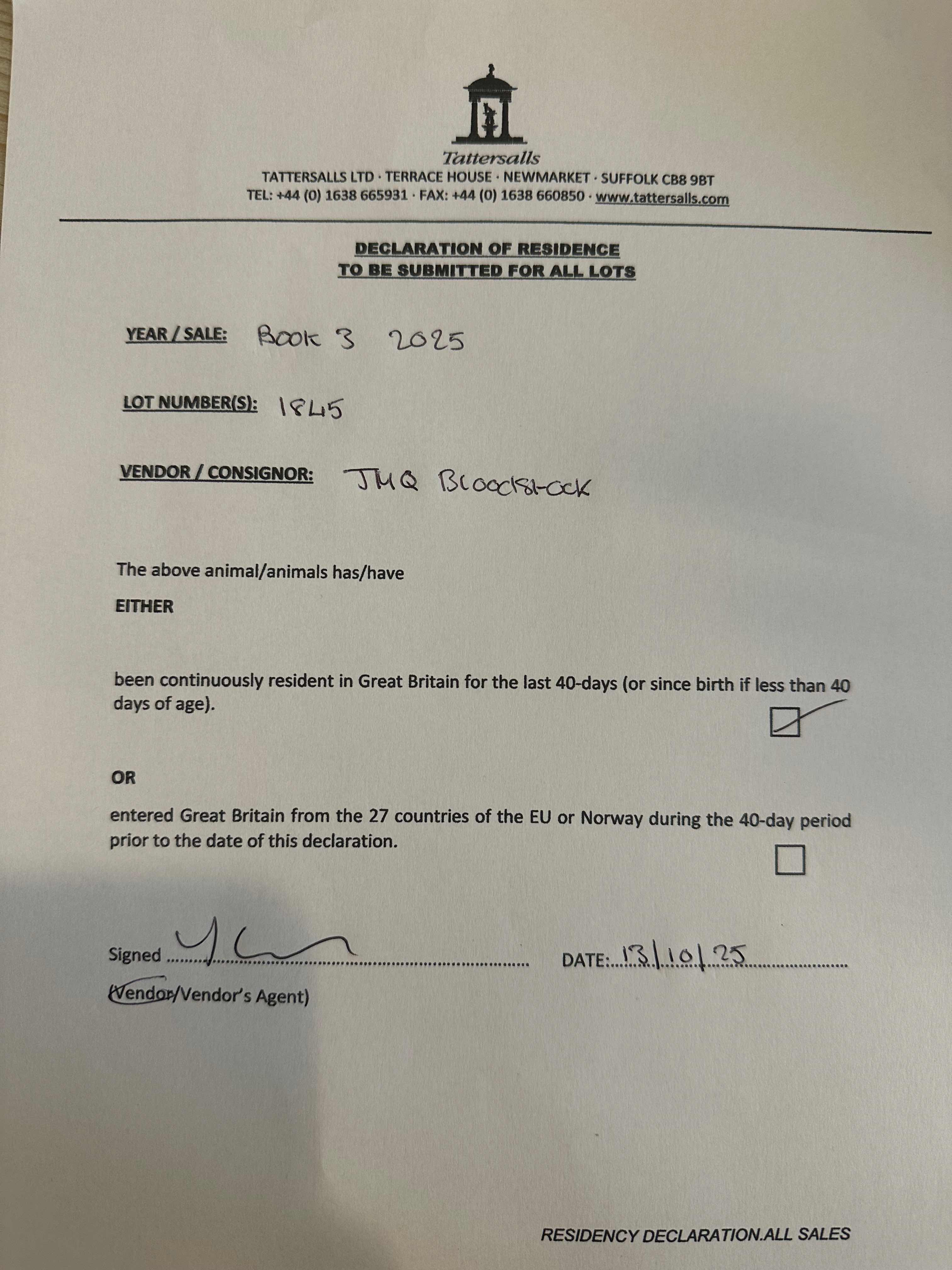 Consignor: JMQ Bloodstock