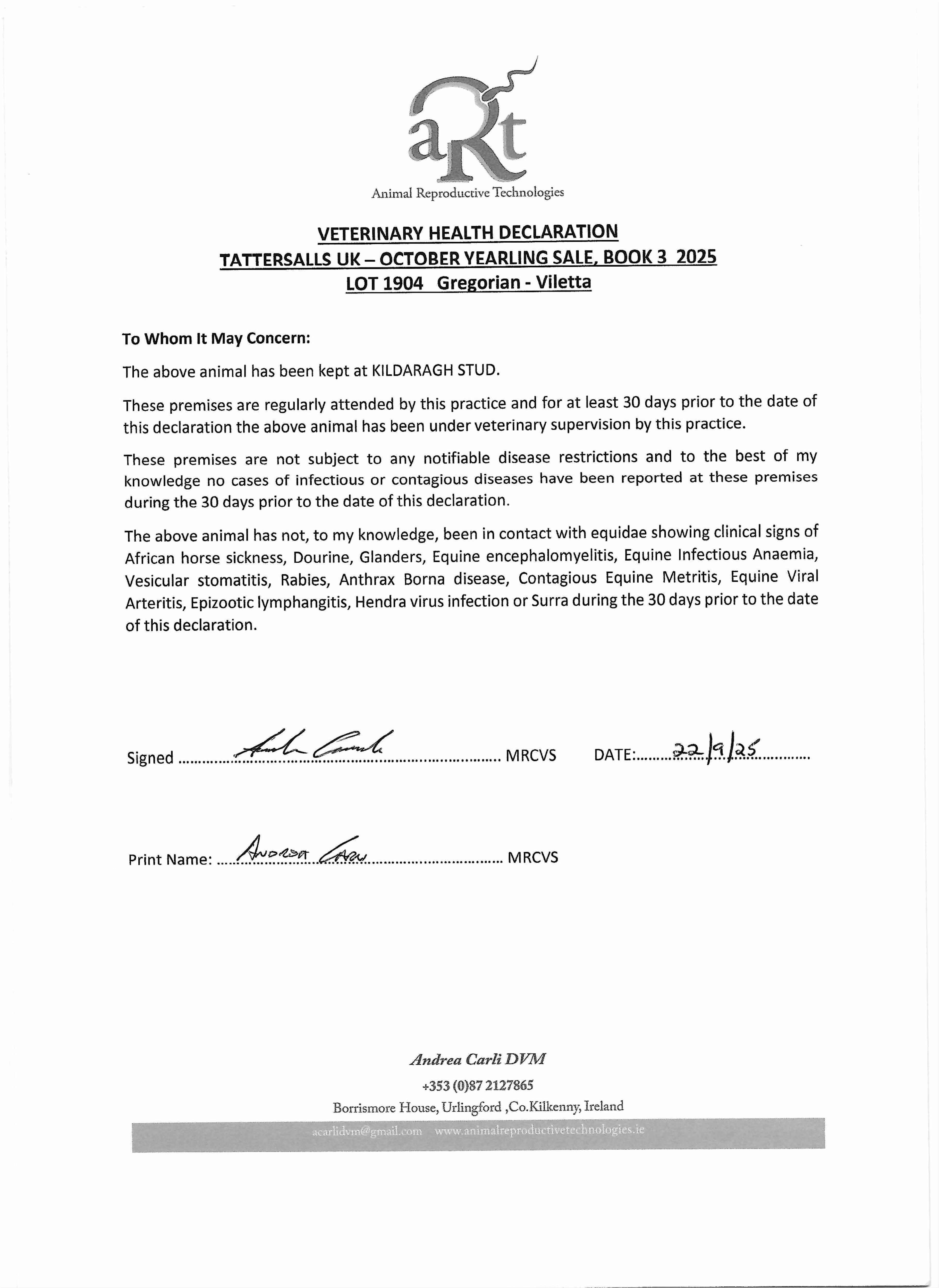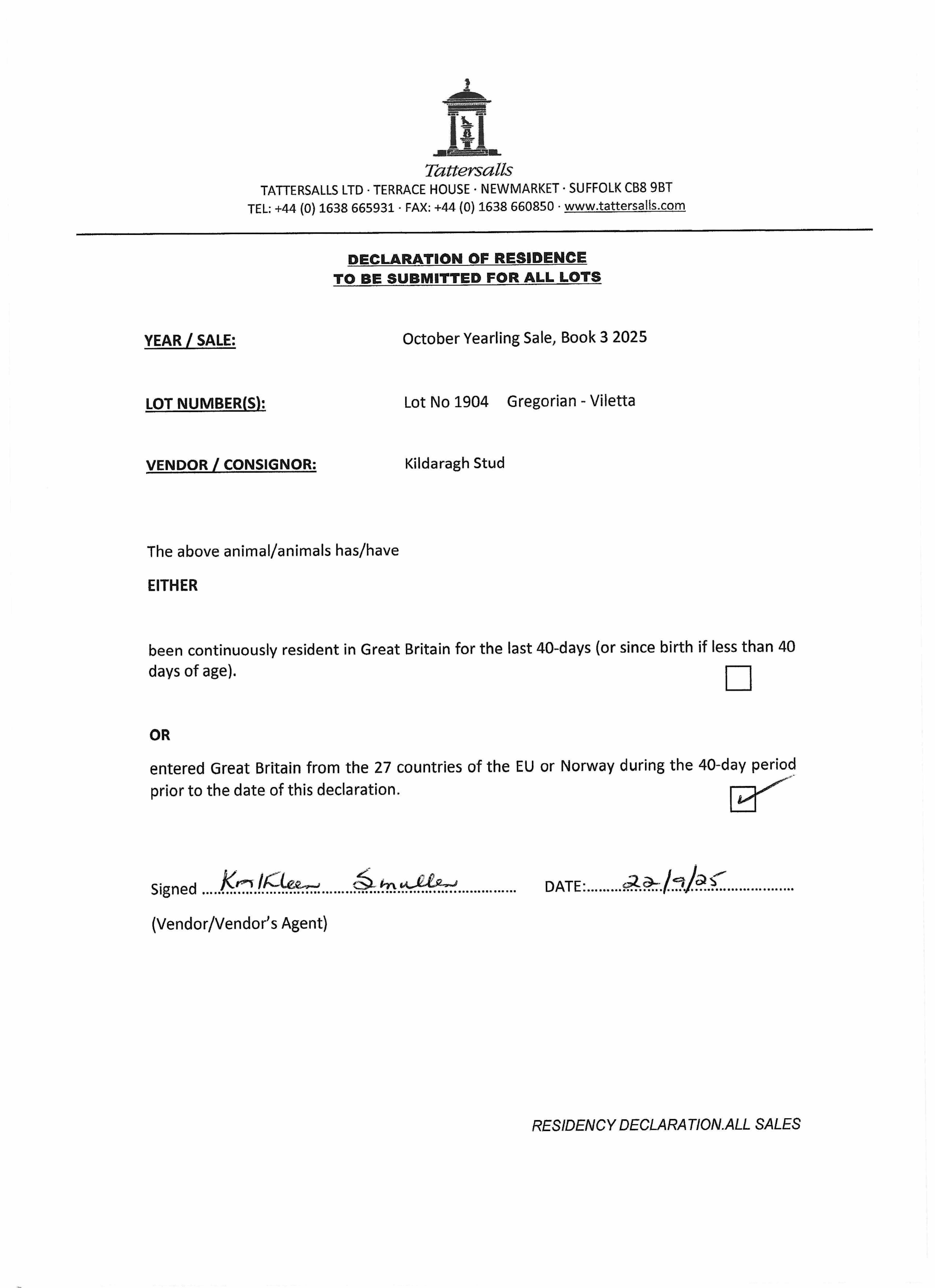 October Yearling Sale, Book 2 2020 lot 1321 F. by New Bay (GB) 2019, Kildaragh Stud, Ireland (Agent)=>Vendor 35,000 gns