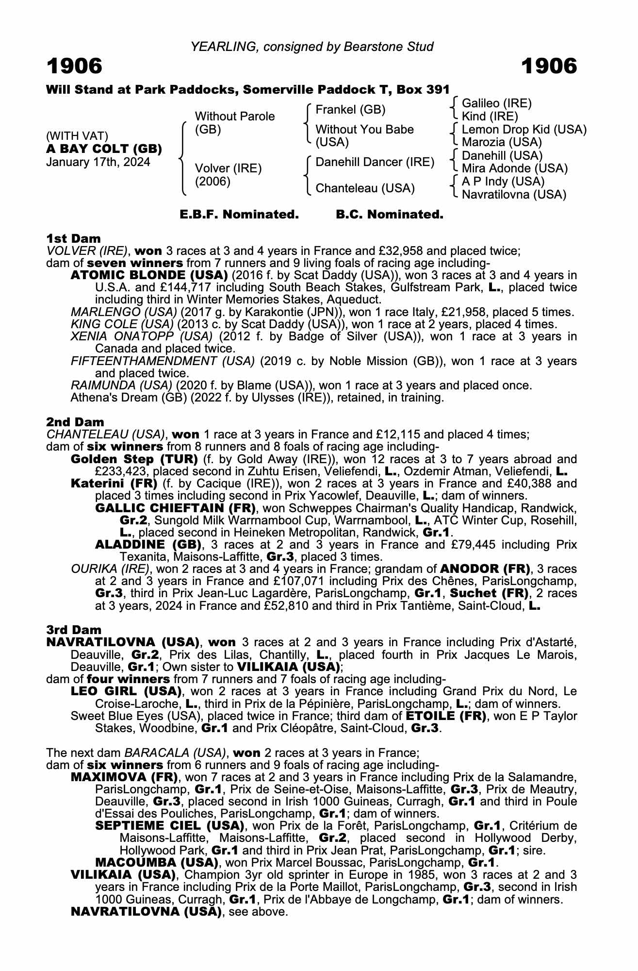 Consignor: Bearstone Stud
