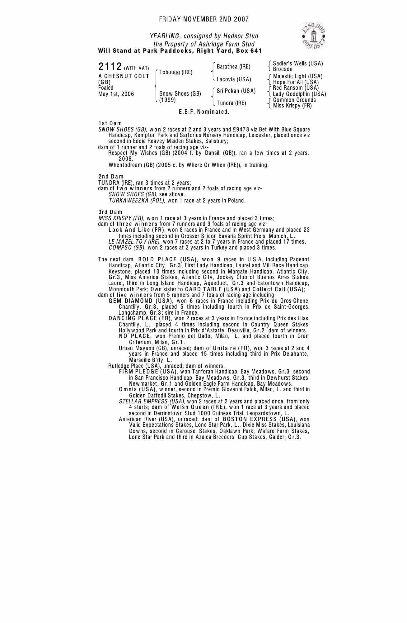 October Yearling Sale, Book 3 2006 lot 2026 C. by Where Or When (IRE) 2005, Hedsor Stud=>Marco Botti 9,000 gns
