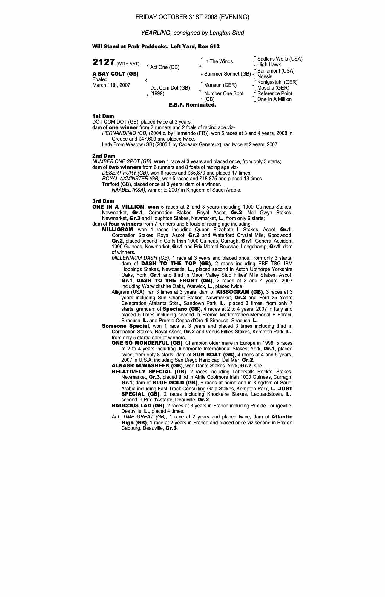 December Foal Sale 2007 lot 461, Silfield Bloodstock=>Langton Stud 9,000 gns