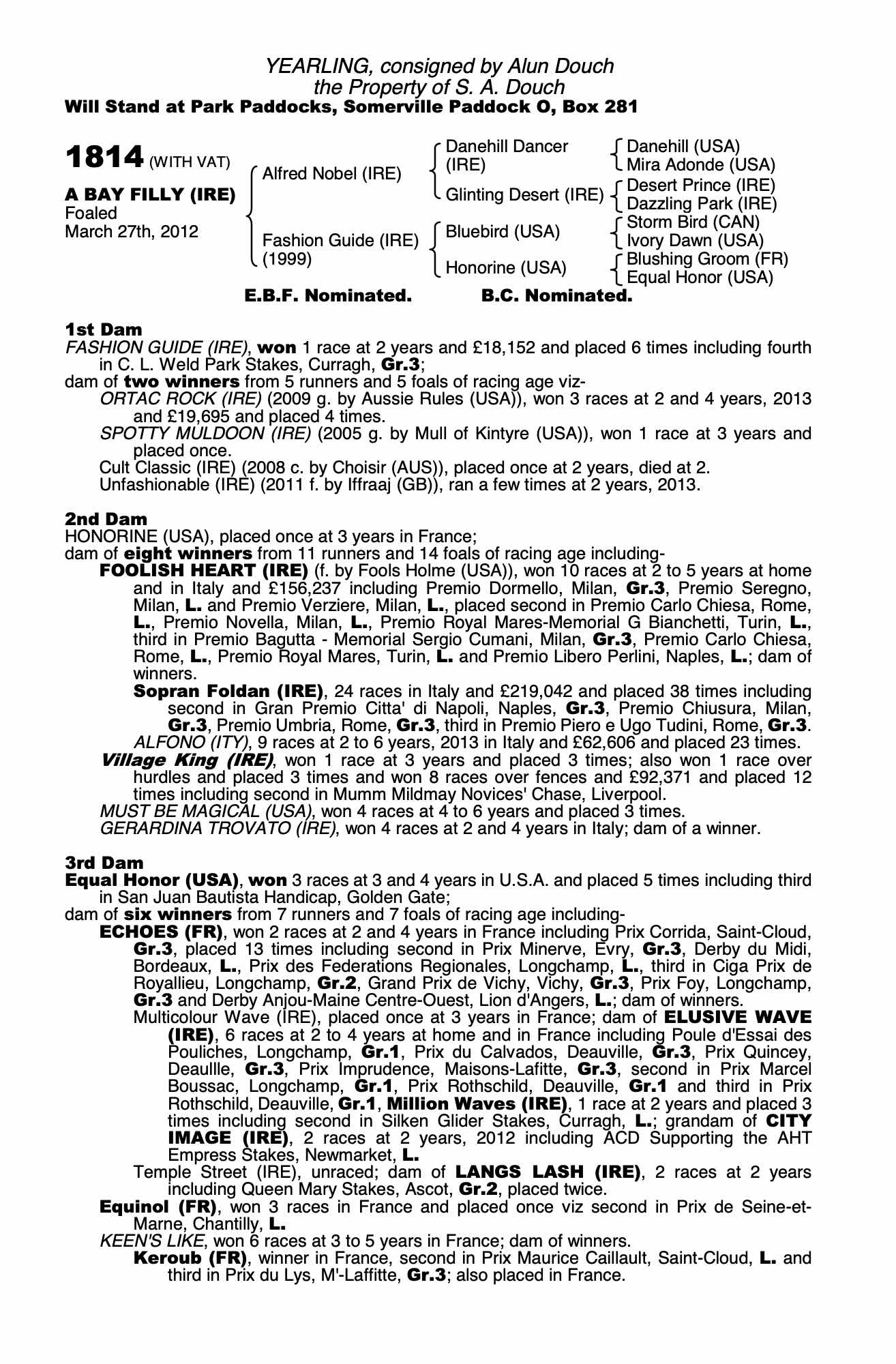 December Foal Sale 2013 lot 812 F. by Holy Roman Emperor (IRE) 2013, Bluebell Farm, Ireland=>Vendor 4,000 gns