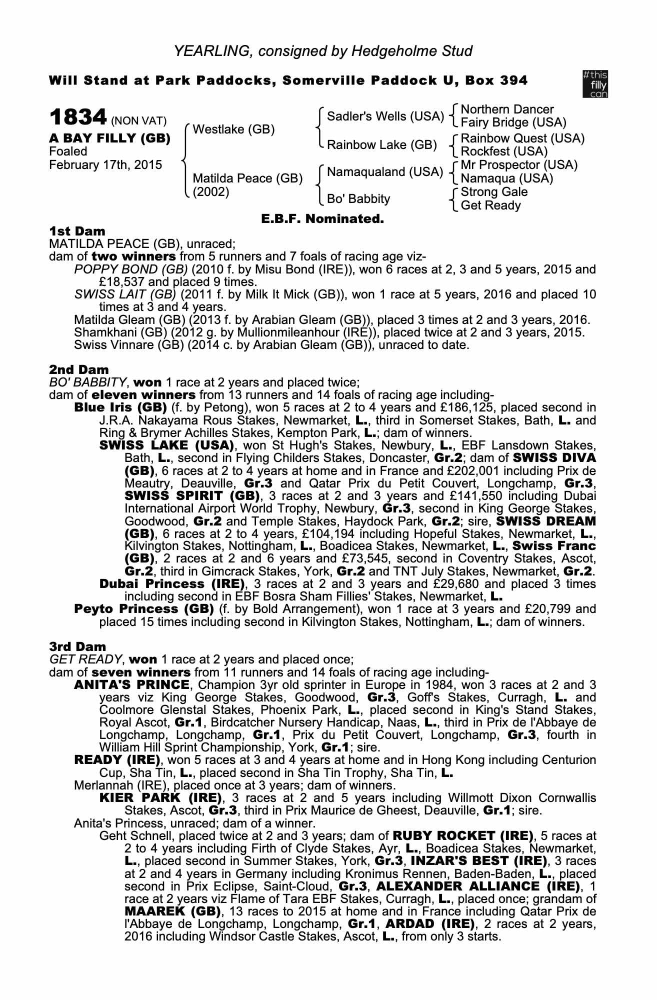 Consignor: Hedgeholme Stud