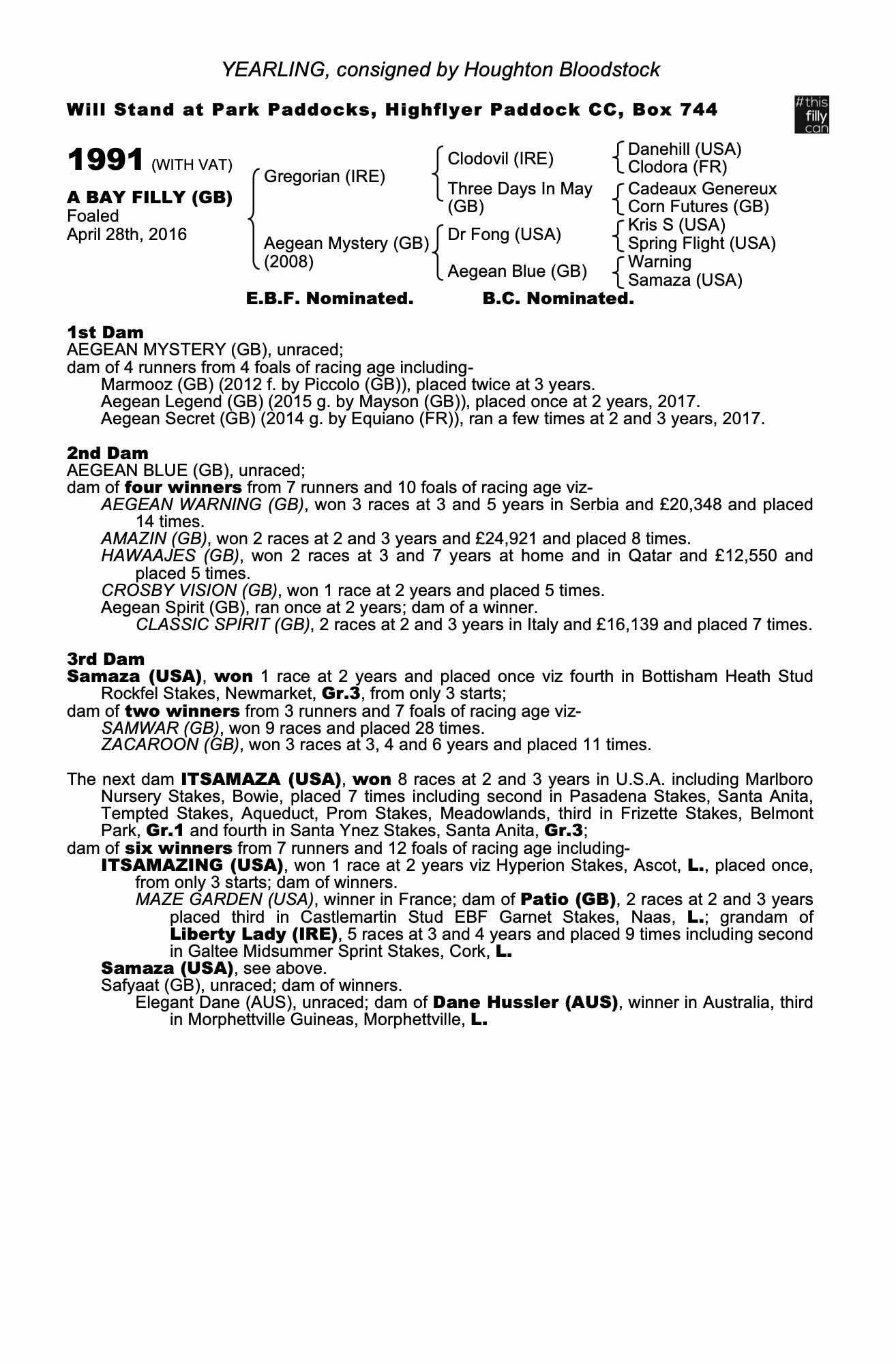 Gregorian (IRE) / Aegean Mystery (GB) B.F. (GB)