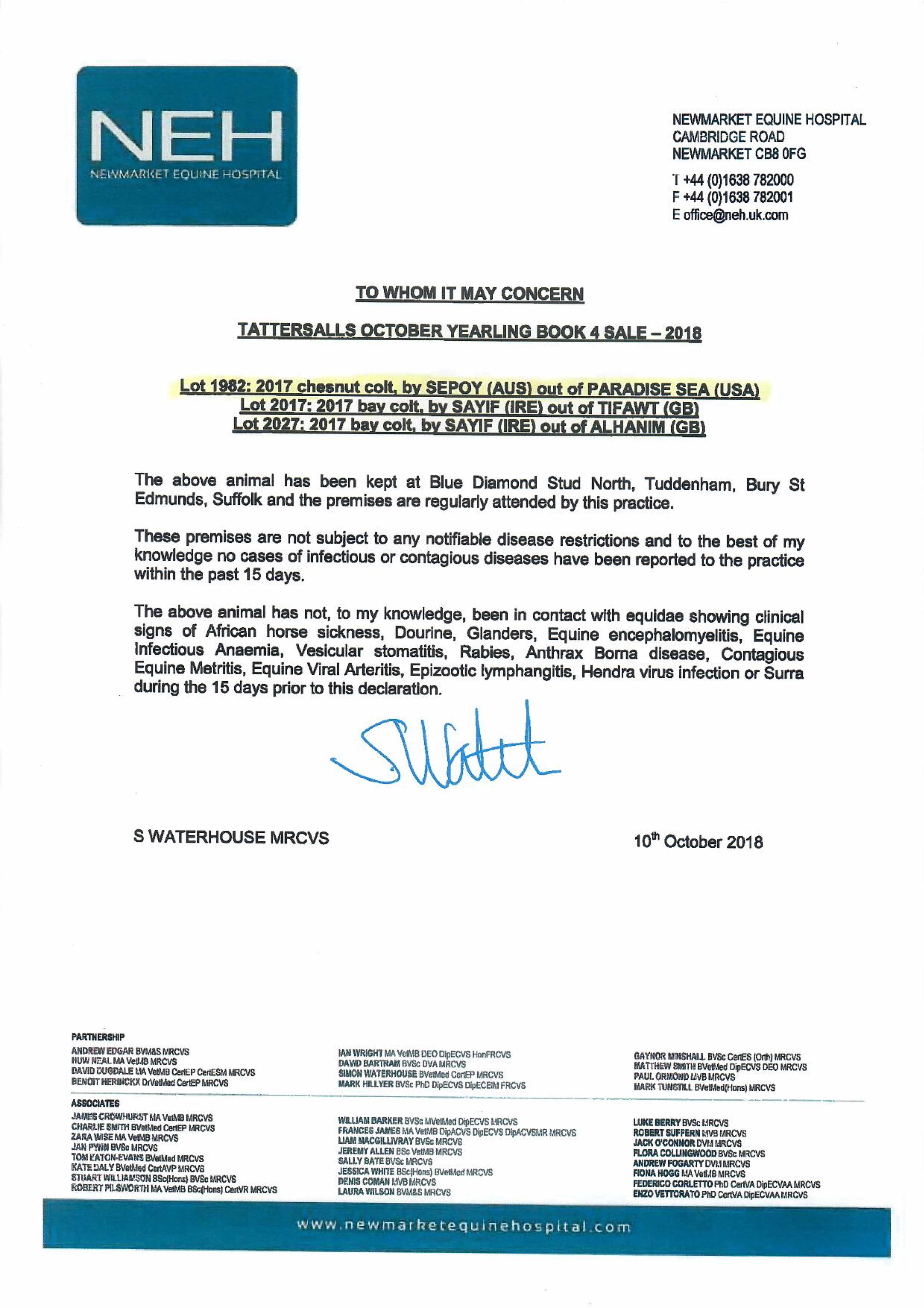 December Foal Sale 2018 lot 312 F. by Ajaya (GB) 2018, Jamie Railton (Agent)=>Lot Not Sold