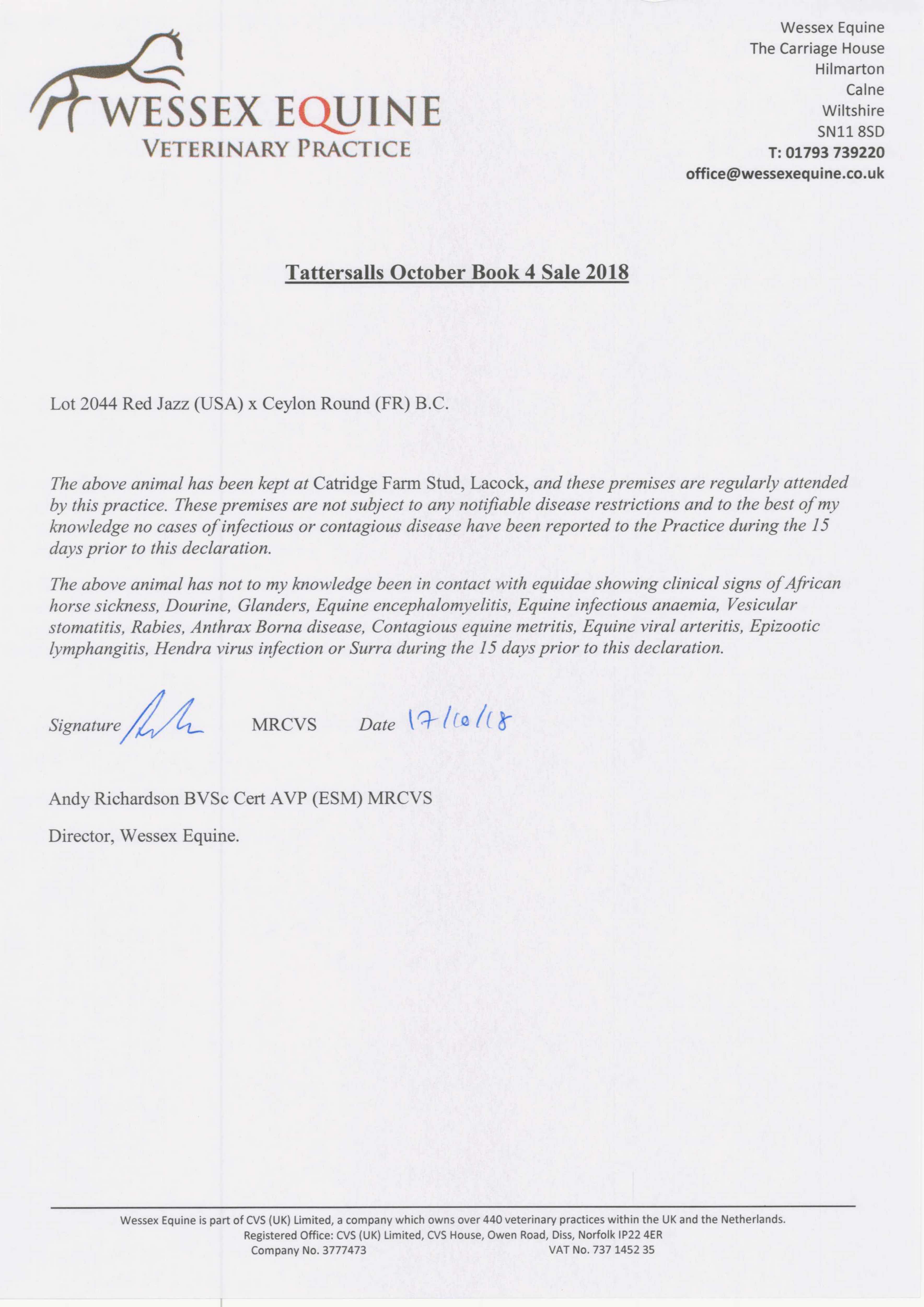 Consignor: Catridge Farm Stud