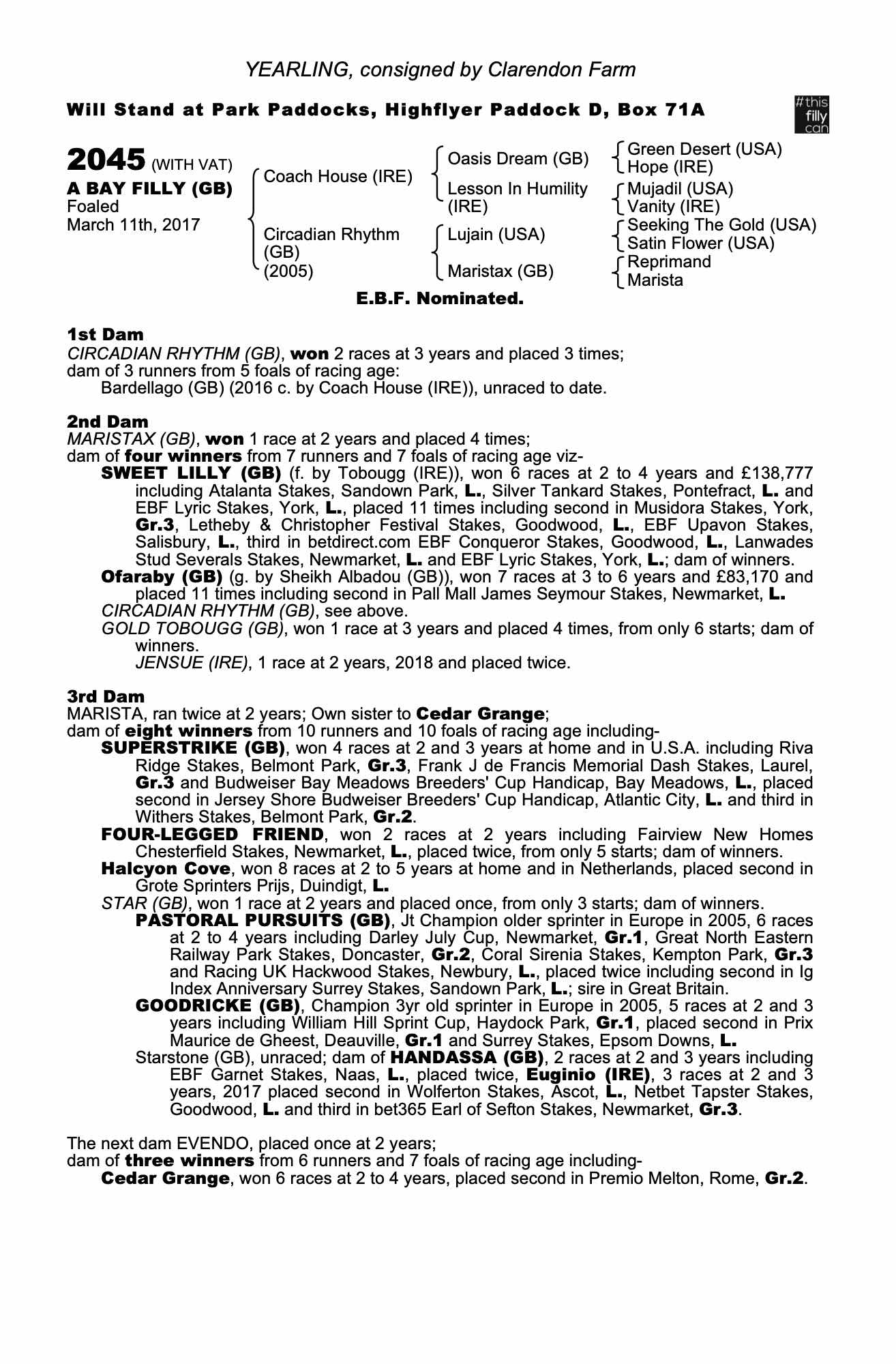 Consignor: Clarendon Farm