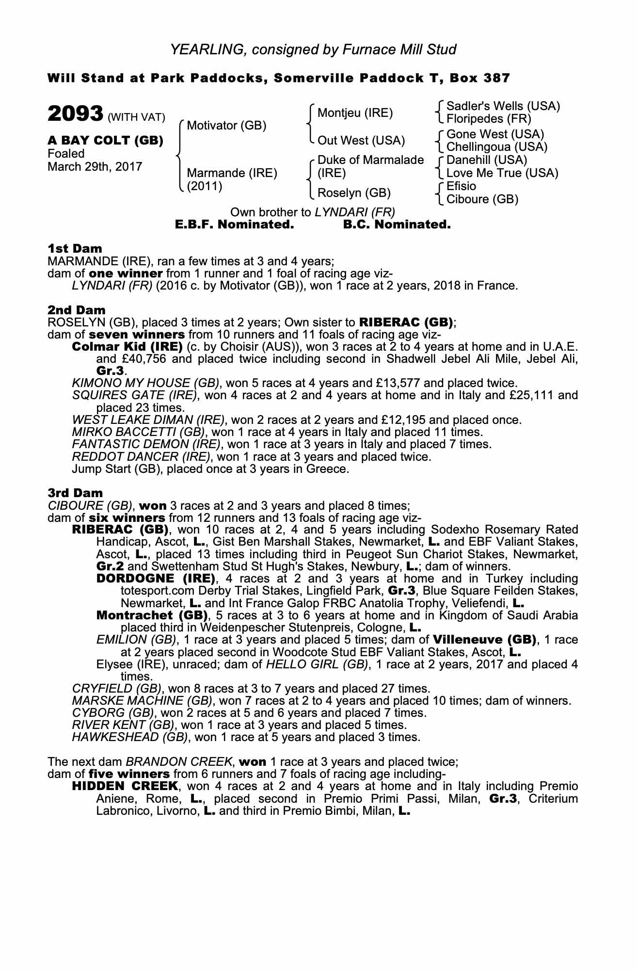 Consignor: Furnace Mill Stud