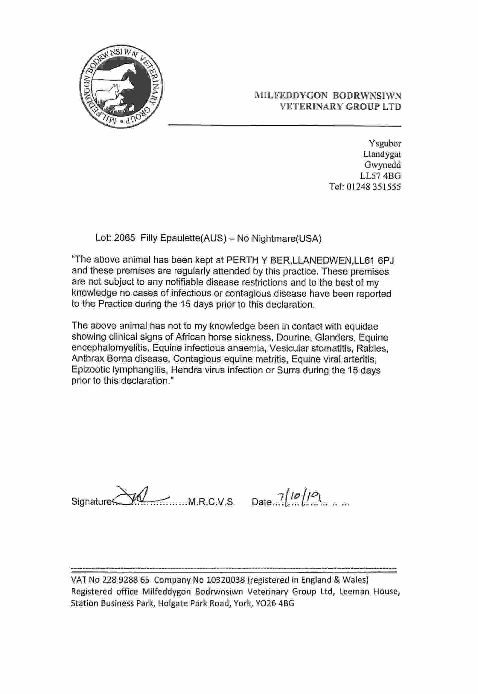 Consignor: Orchard Close Stud
