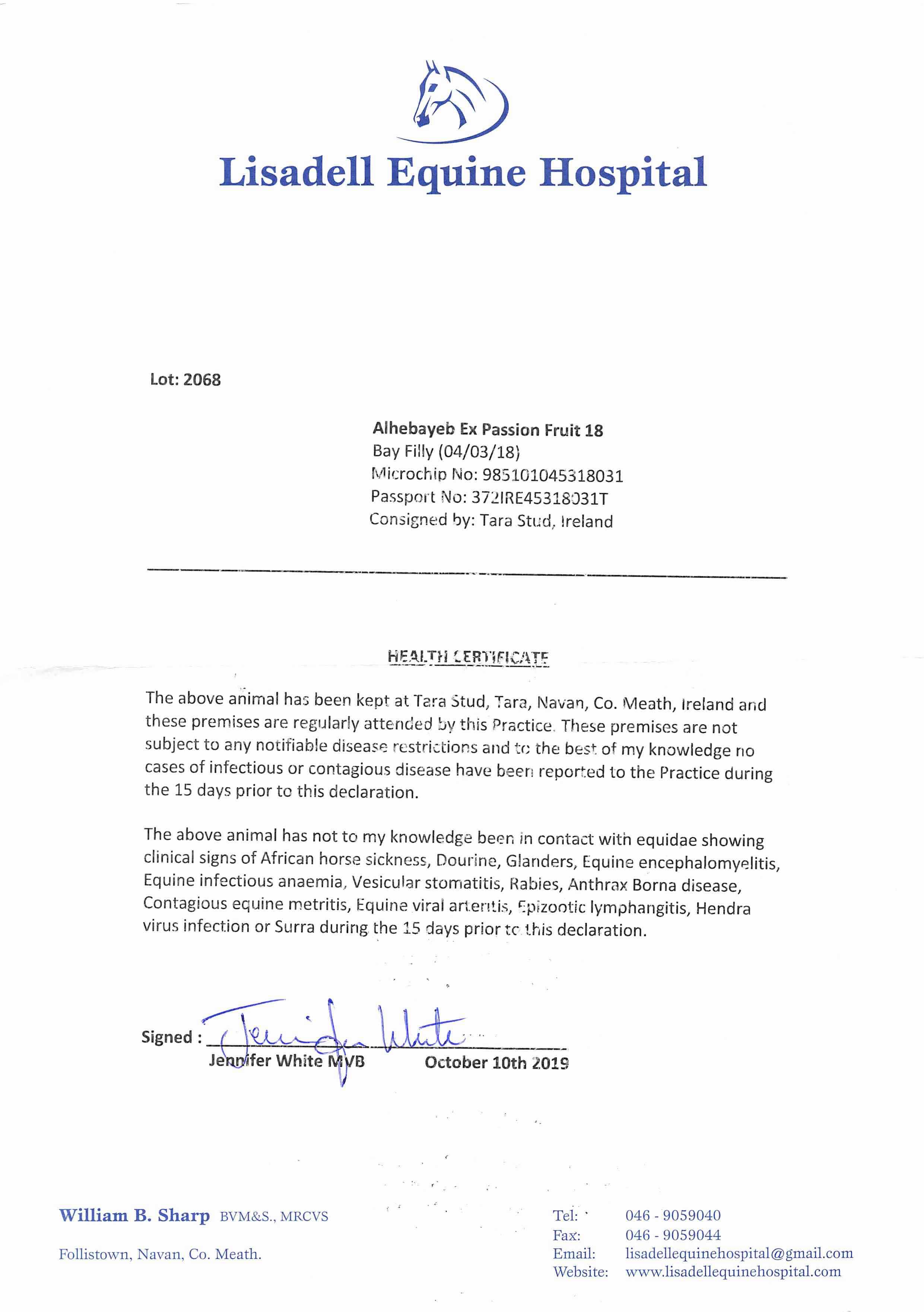 Consignor: Tara Stud, Ireland