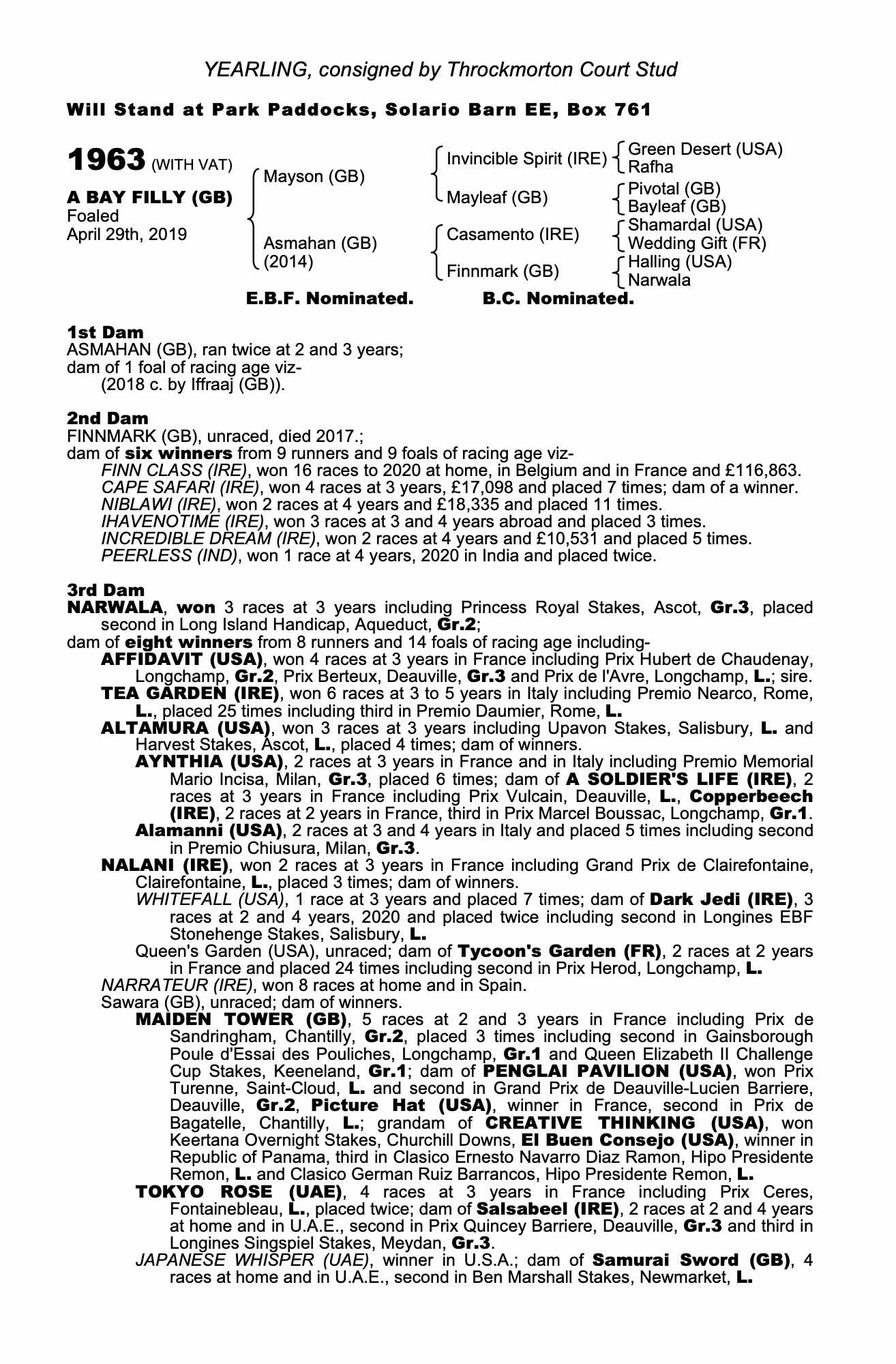 December Foal Sale 2019 lot 1089, Throckmorton Court Stud=>Lot Not Sold