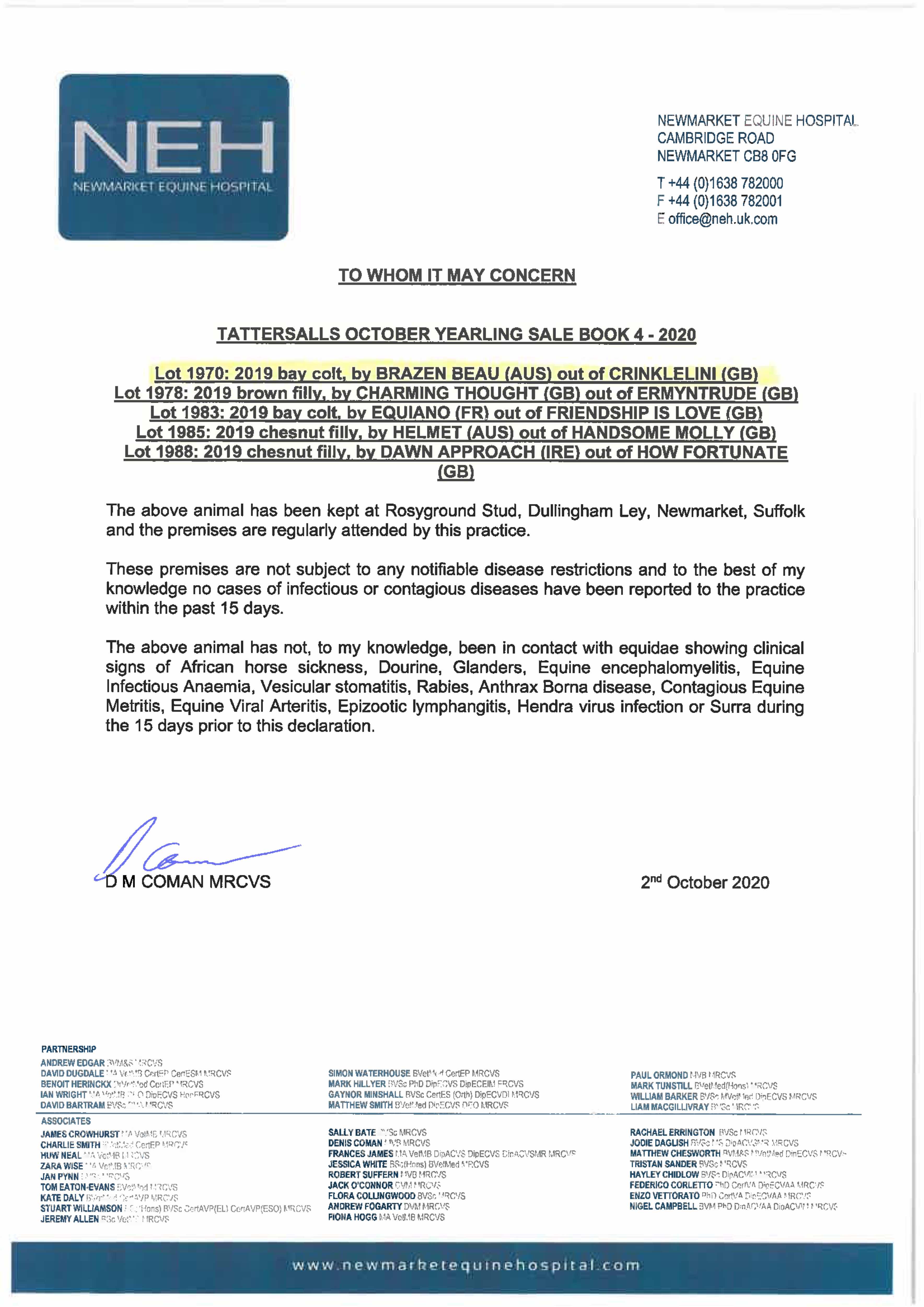 Consignor: Rosyground Stud