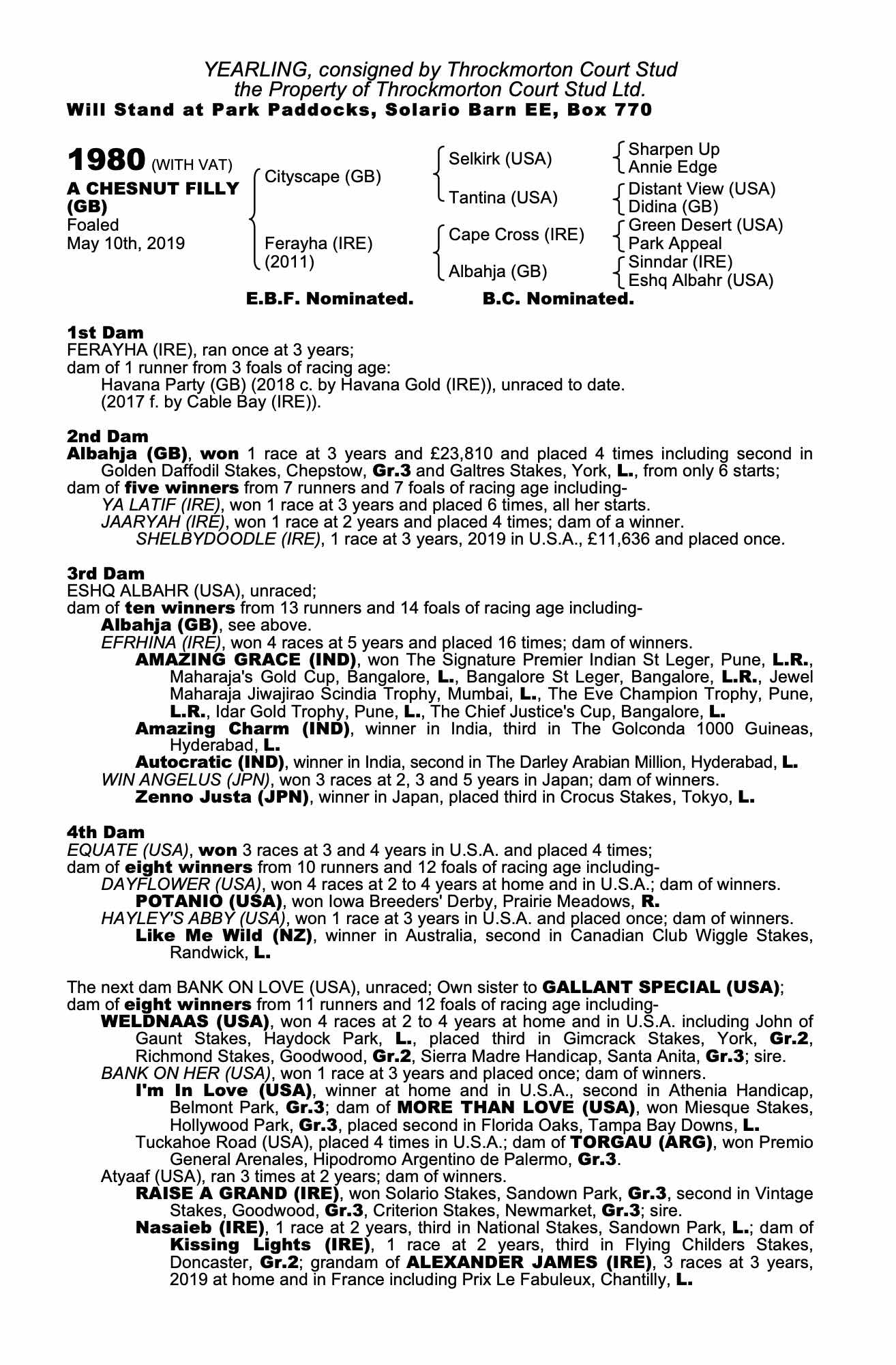 Consignor: Throckmorton Court Stud
