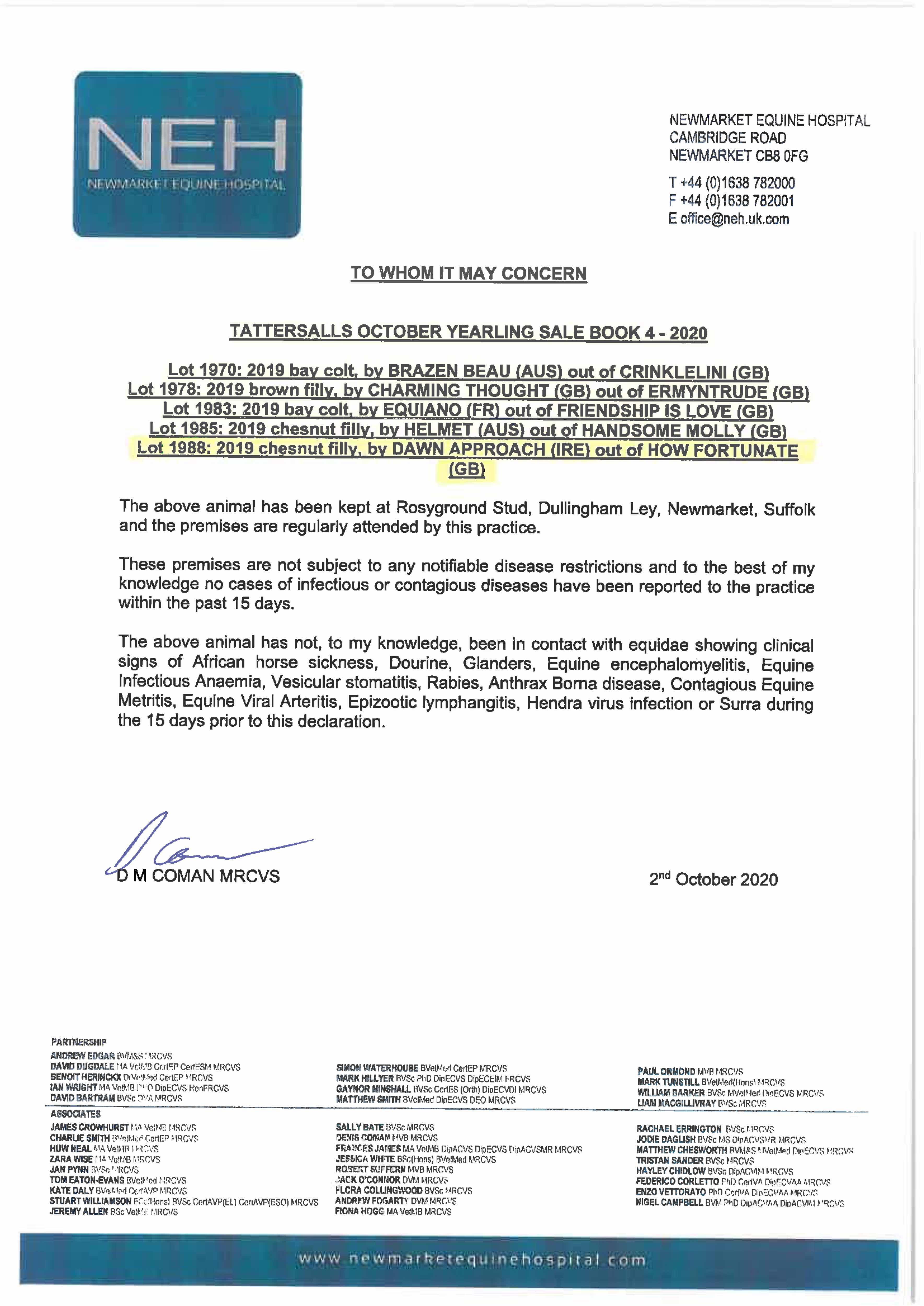 Consignor: Rosyground Stud