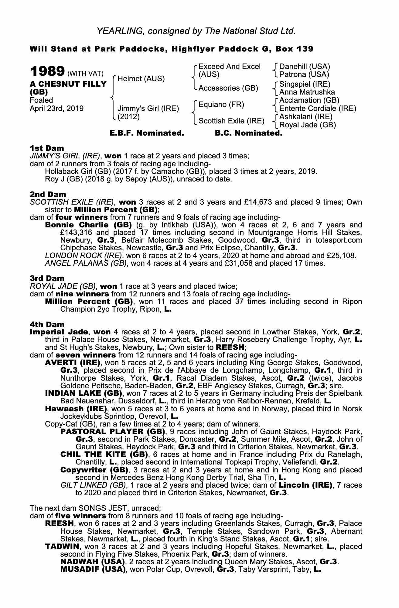 Autumn Horses in Training Sale 2019 lot 1420 Hollaback Girl (GB) (F. by Camacho (GB)), The National Stud Ltd.=>Jose Manuel Pedreira Da Assuncao 4,000 gns