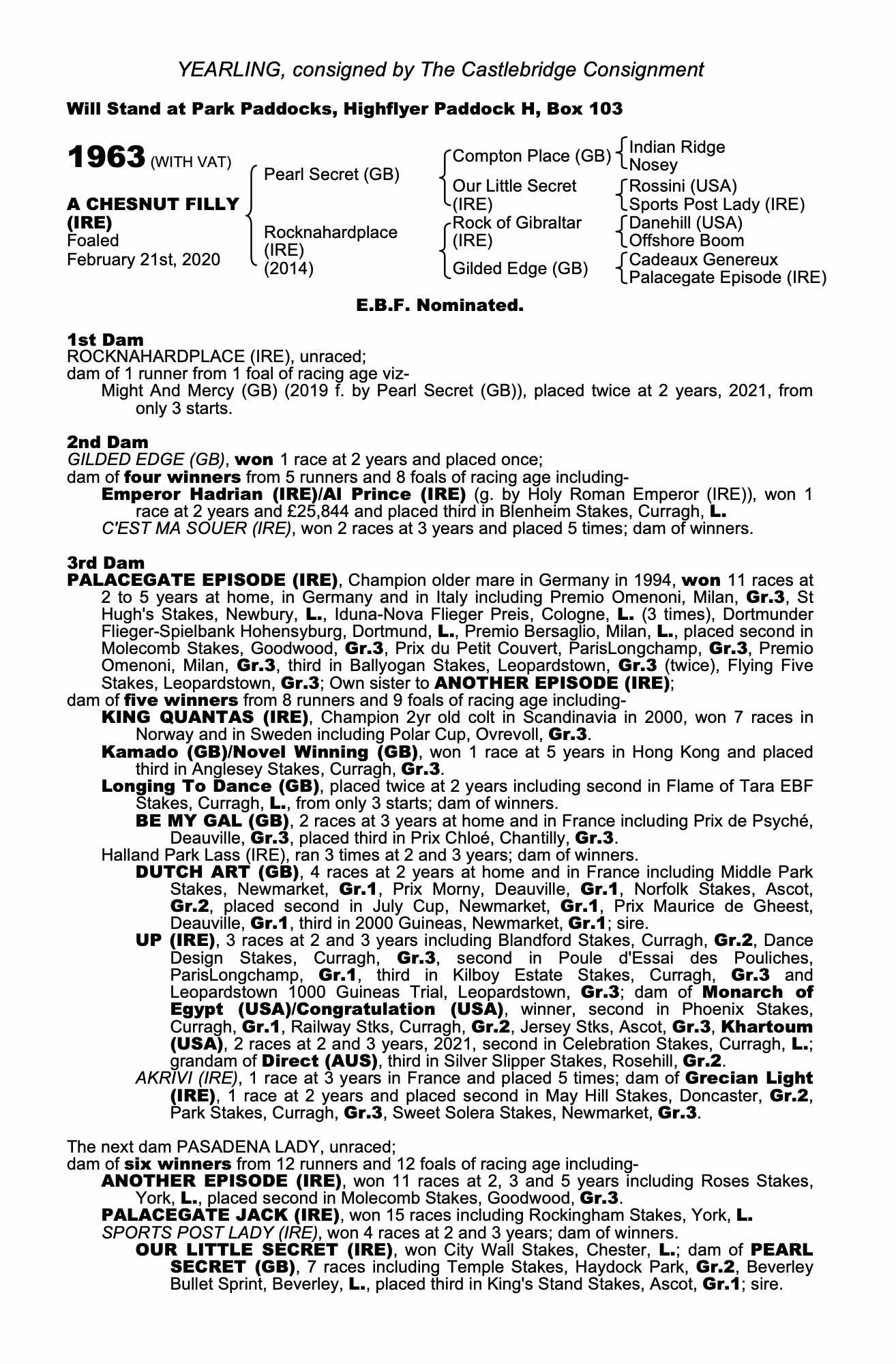 Flat Foal & Breeding Stock Sale 2019 lot 74 F. 2019, Salcey Forest Stud=>Bluebell Bloodstock €2,800