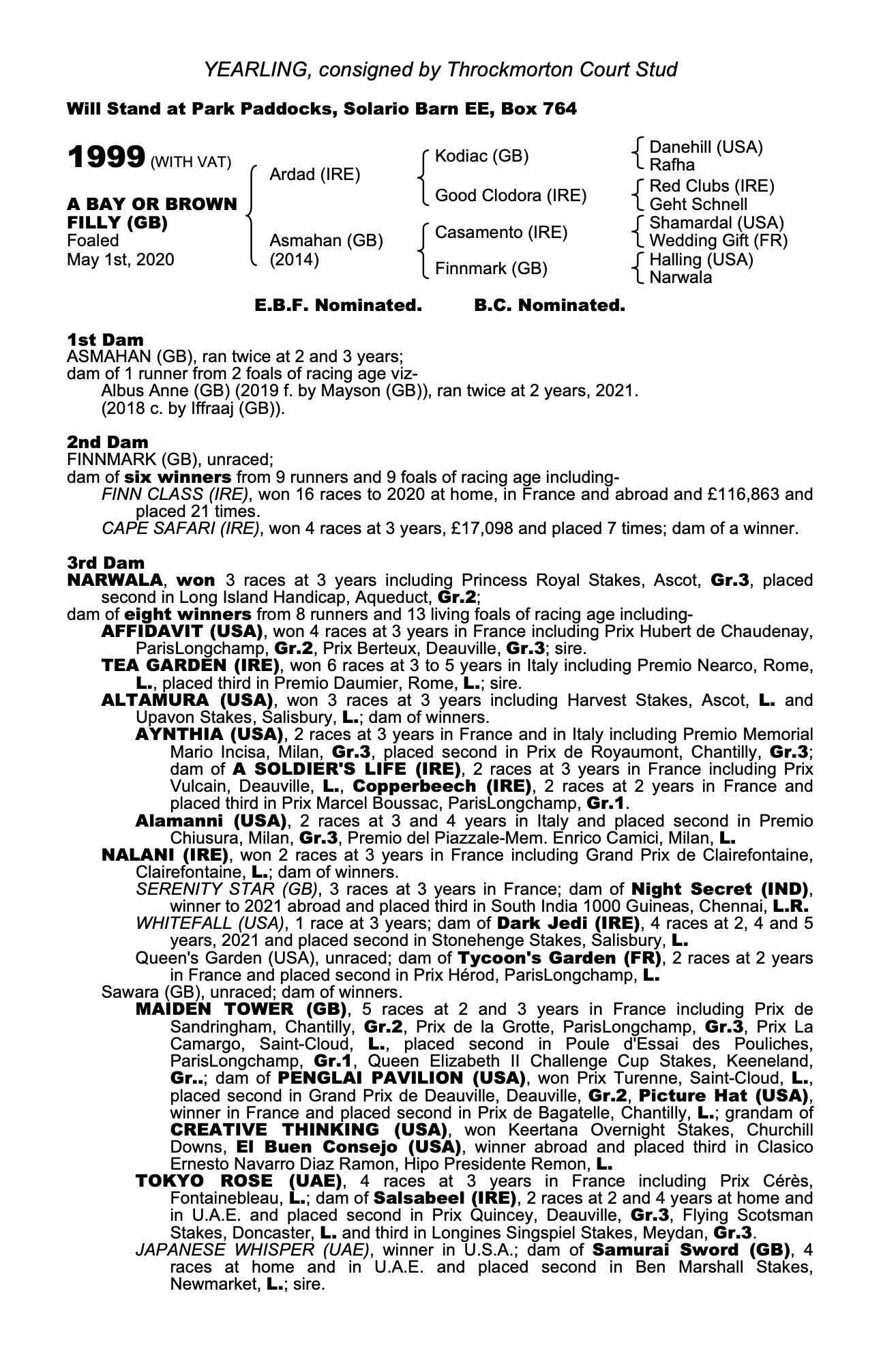 October Yearling Sale, Book 4 2020 lot 1963 F. by Mayson (GB) 2019, Throckmorton Court Stud=>Lot Not Sold
