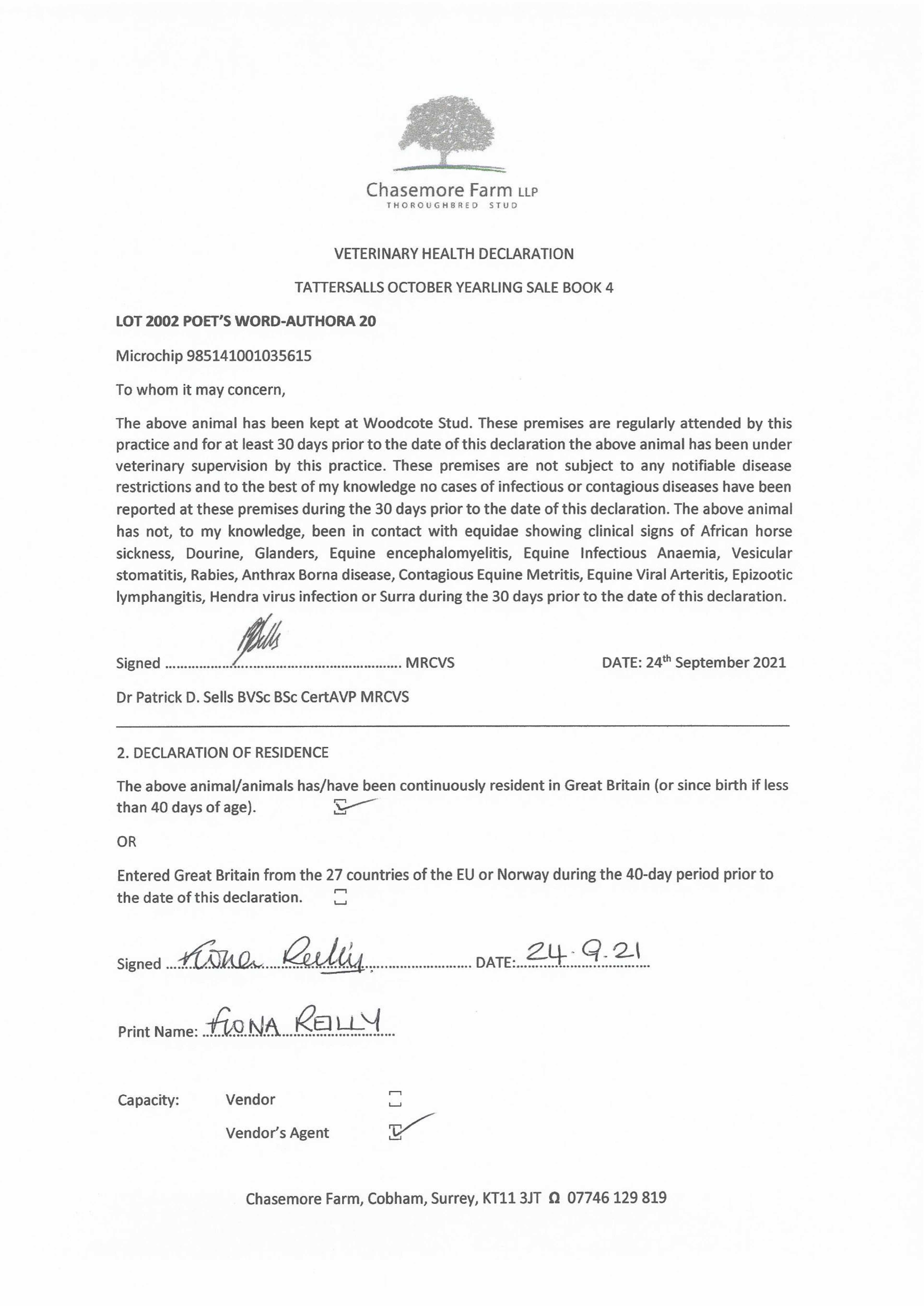 Consignor: Woodcote Stud