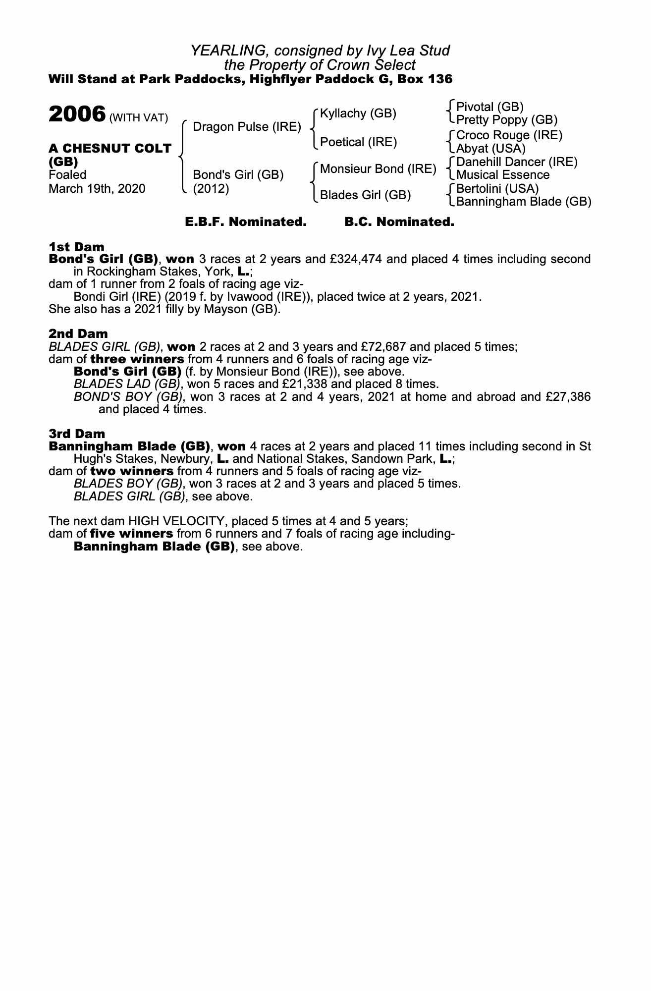 Autumn Horses In Training Sale 2022 lot 598, Denton Hall Stables (M. Dods)=>Vladimir Vukojevic 5,000 gns