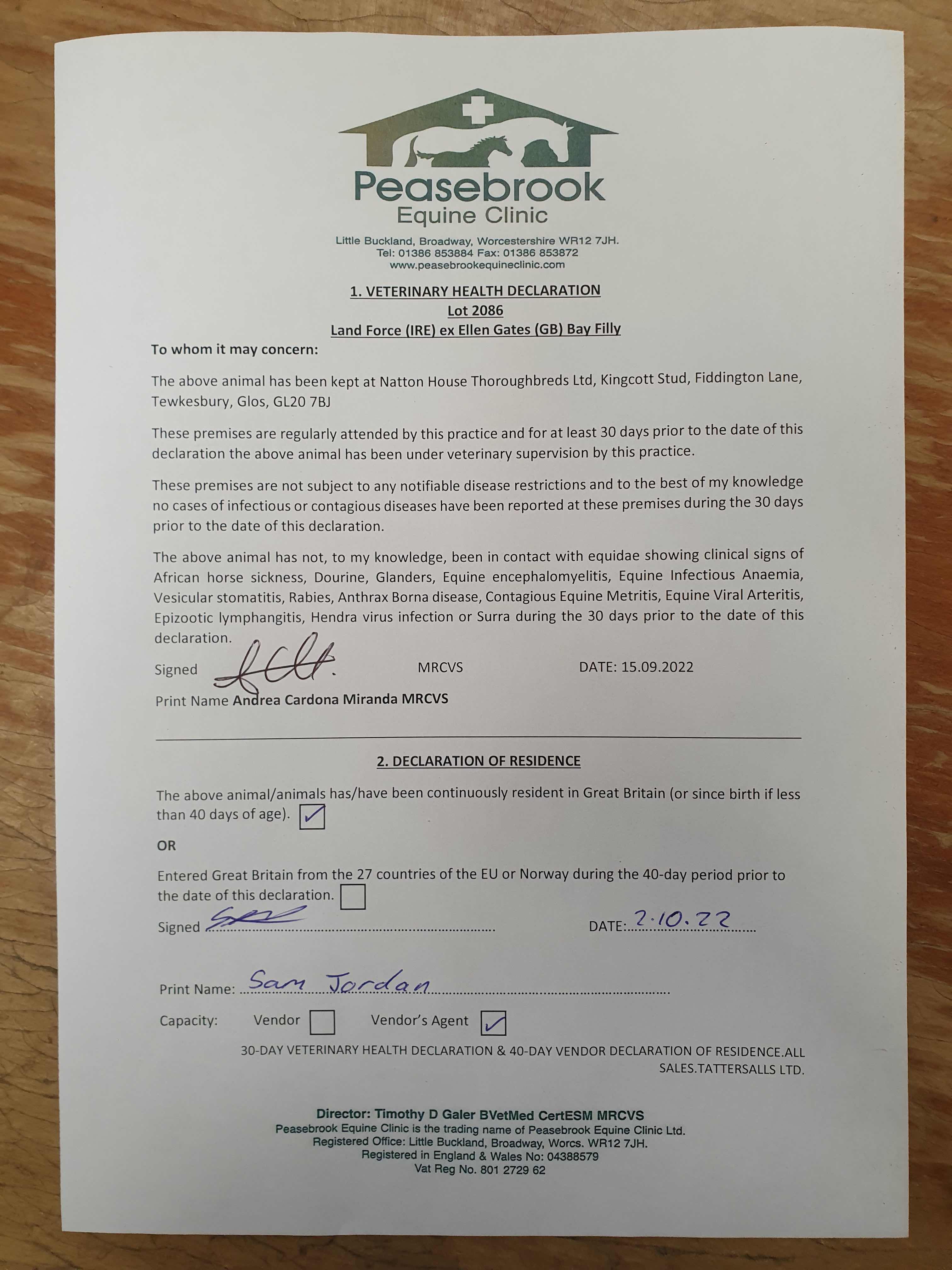 Online Sale - 19th September 2024 lot 108 Destiny's Spirit (GB) (F. by Lightning Spear (GB)), High View Stables (D. Ffrench Davis)=>Lot Not Sold 5,000 gns