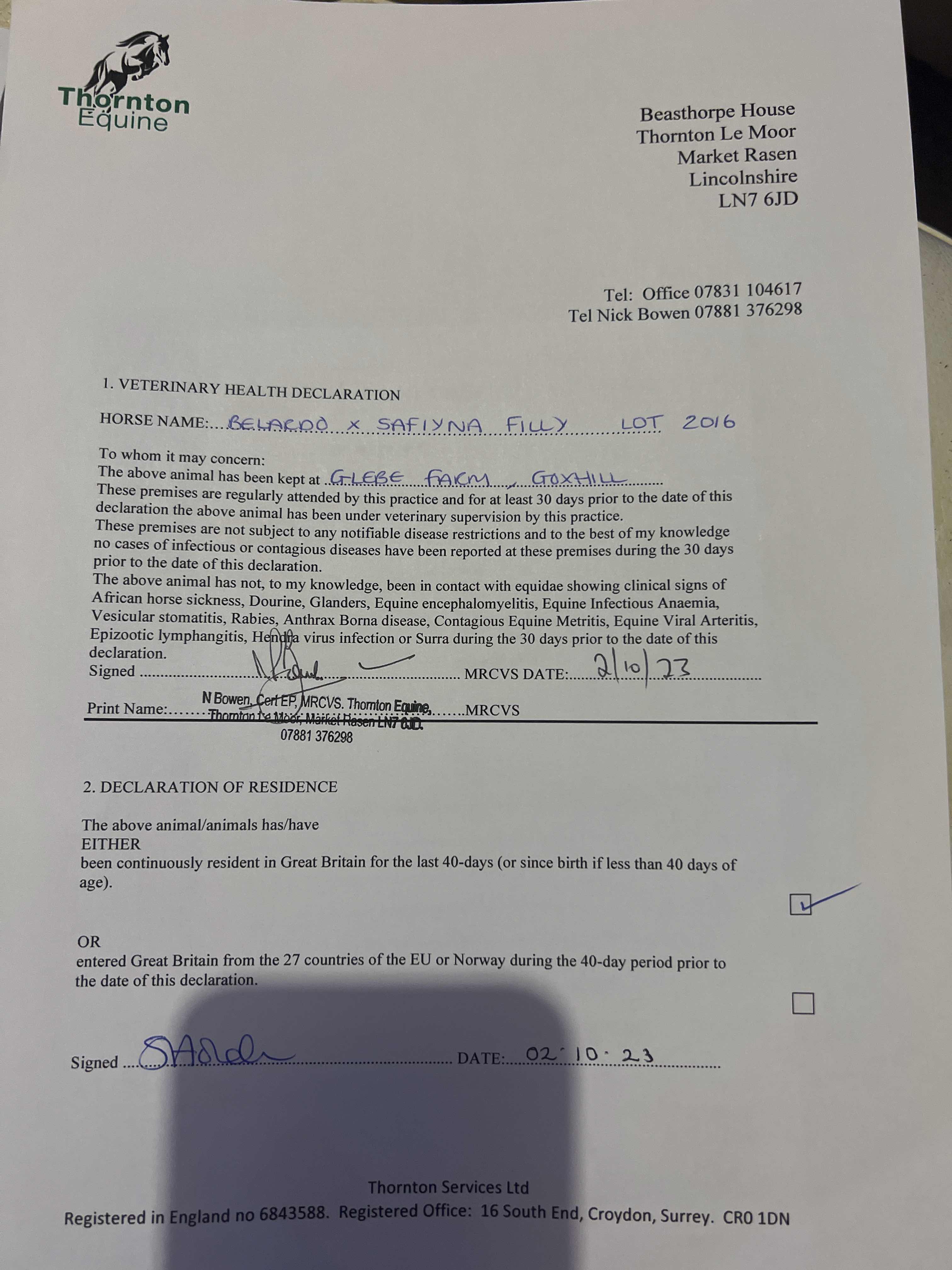 Consignor: Glebe Farm Stables