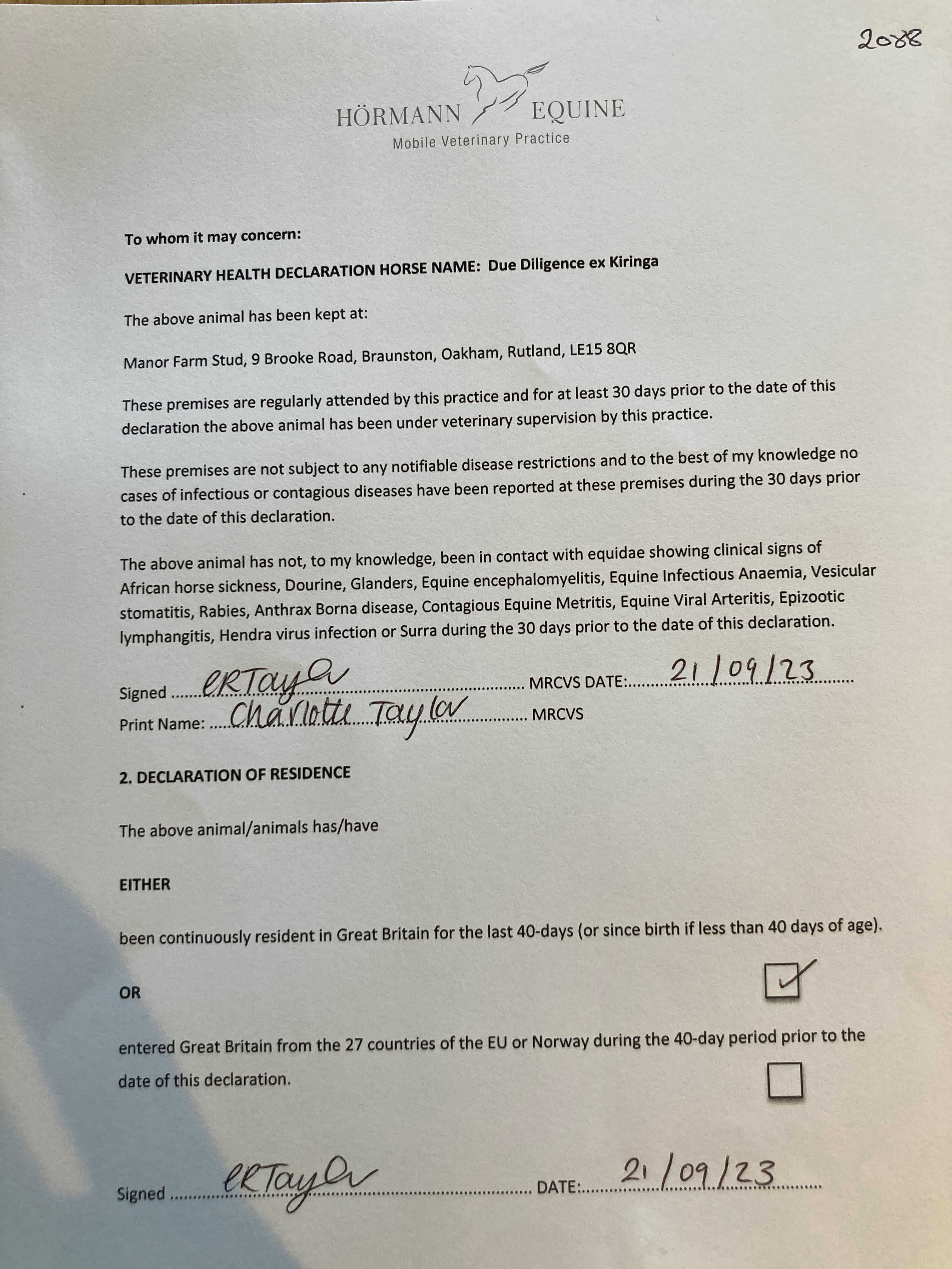 Contact: Toby Watson ✆ 07918125352 ✉ toby@manorfarmstud.com