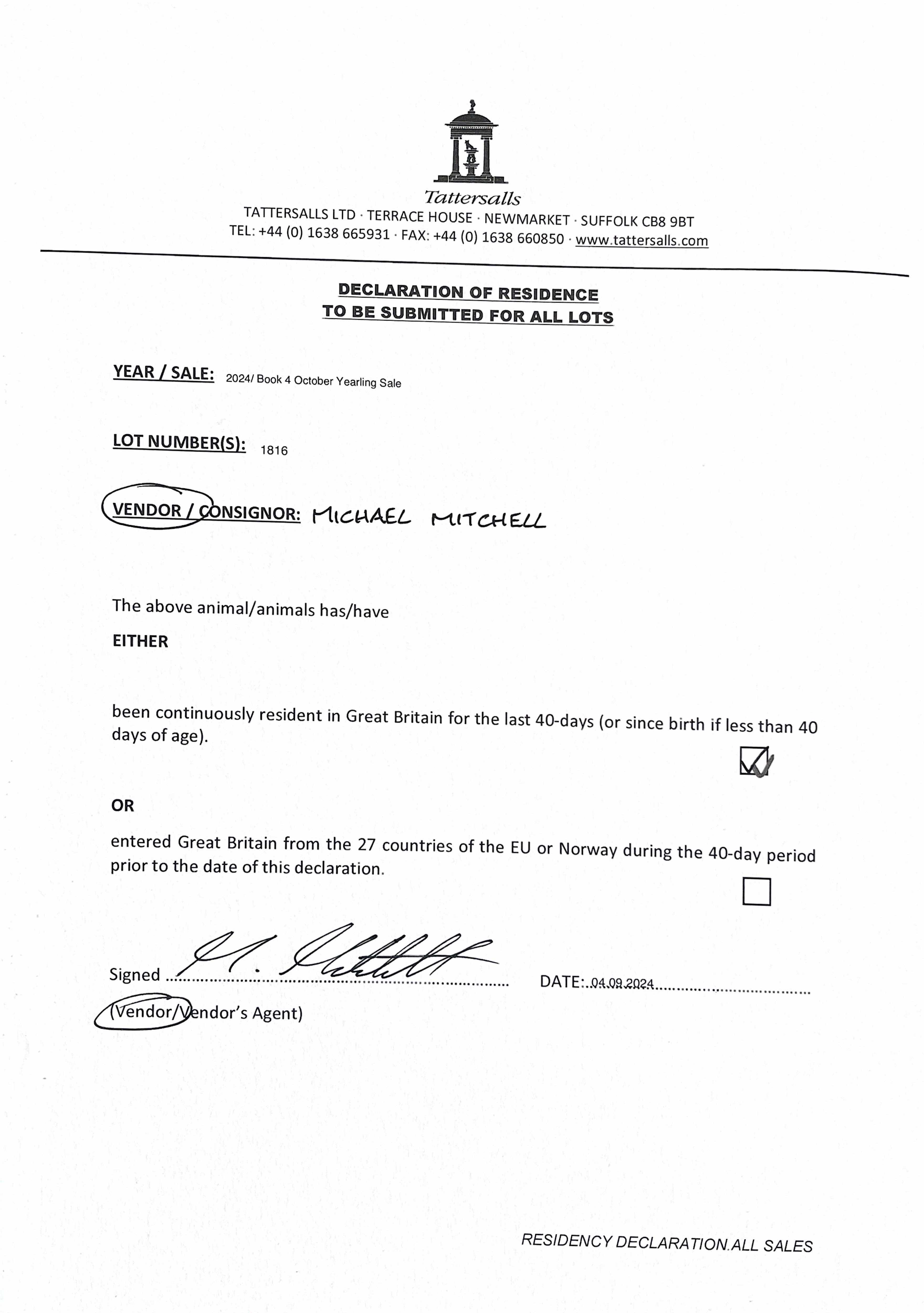 Consignor: Jamie Railton (Agent)