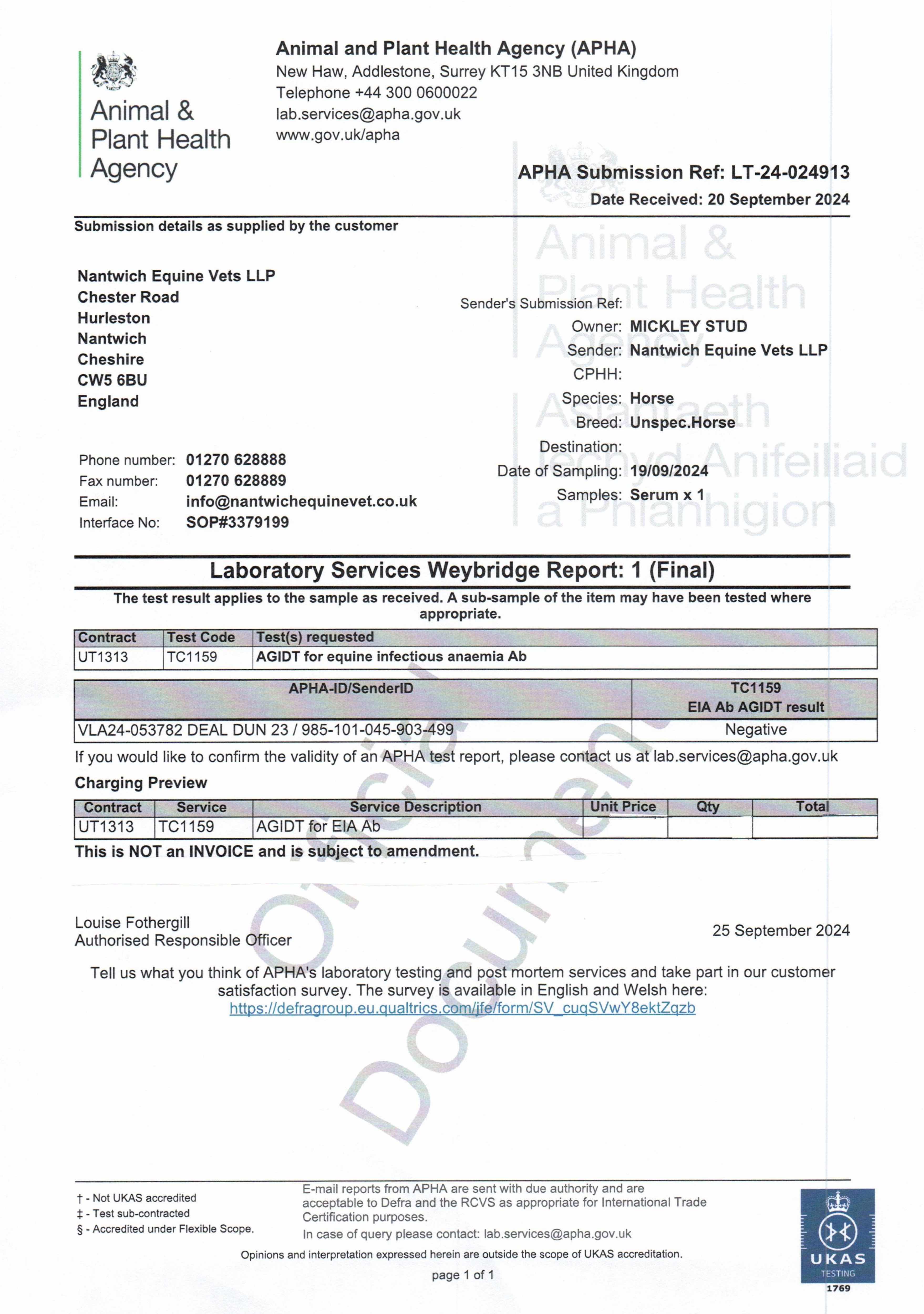 Official Veterinarian Declaration