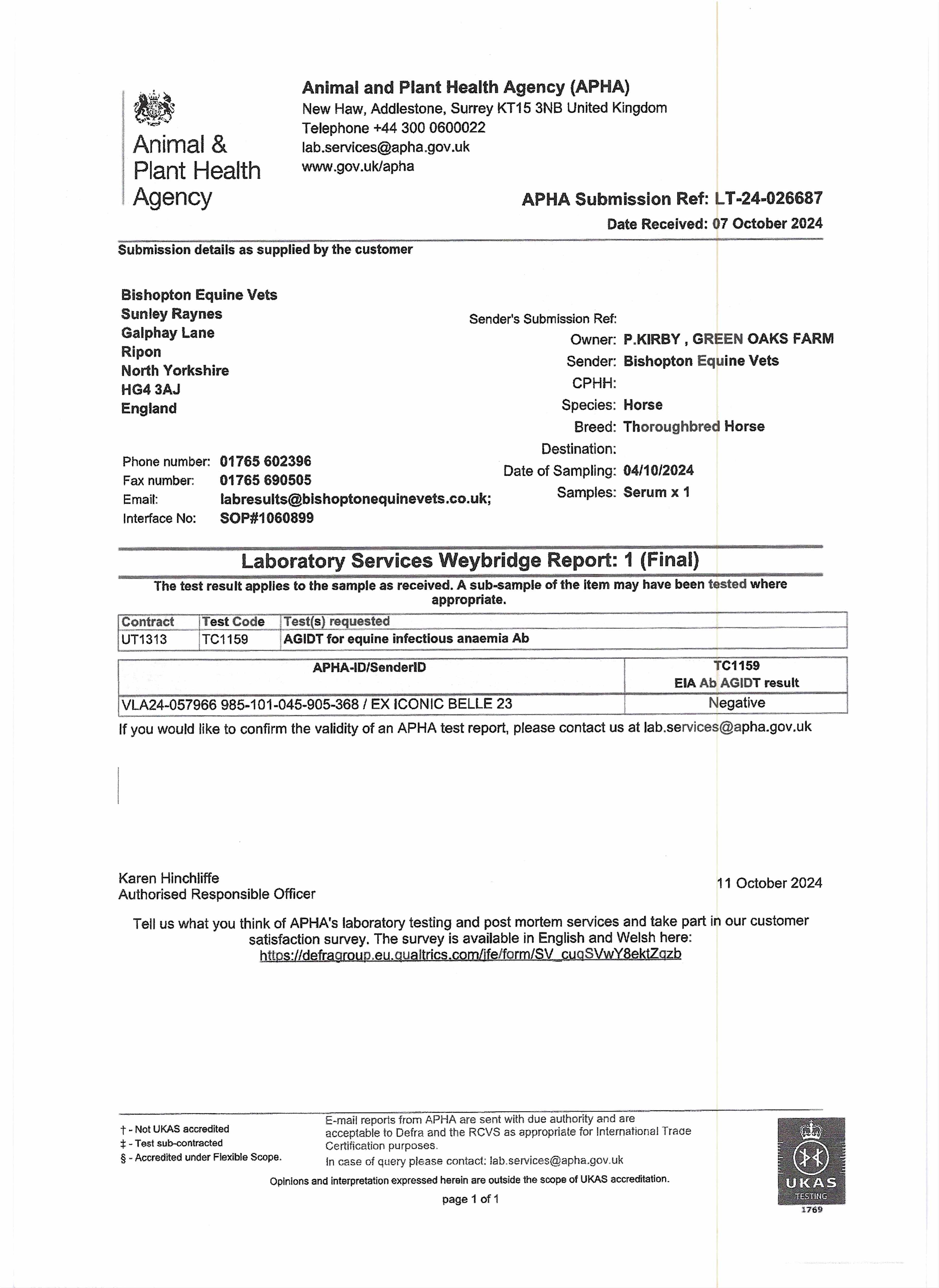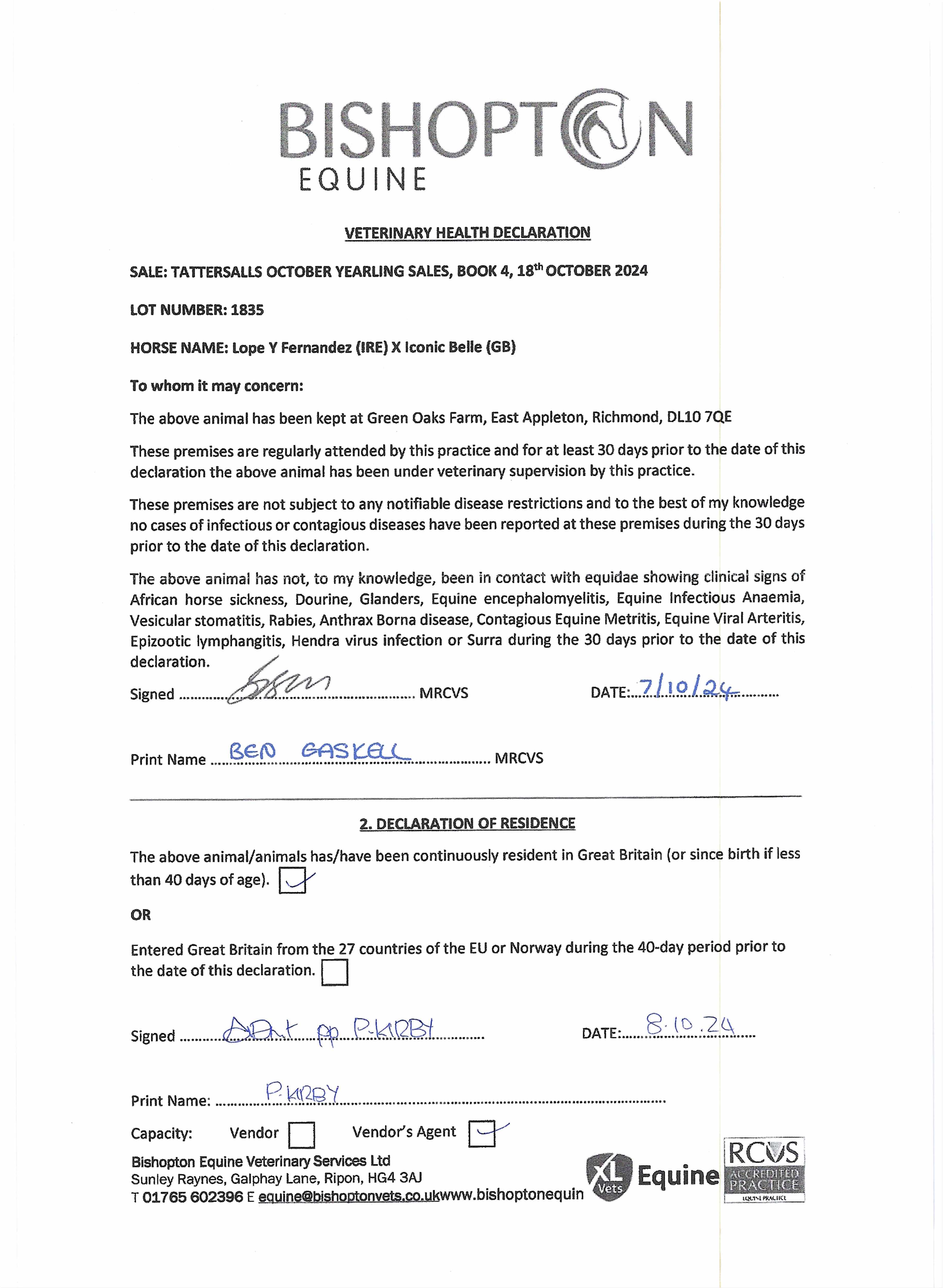 Official Veterinarian Declaration