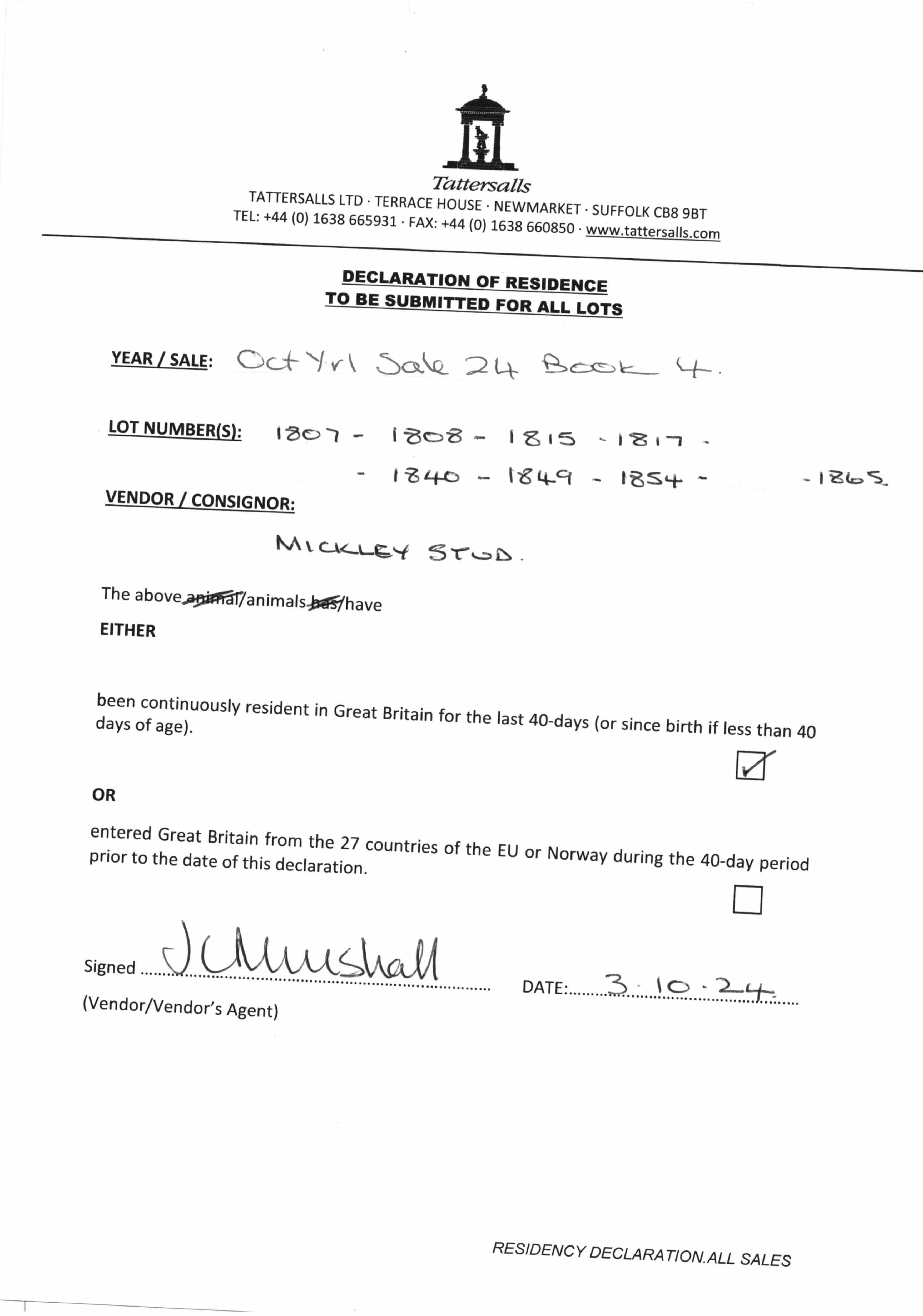 Consignor: Mickley Stud Ltd.