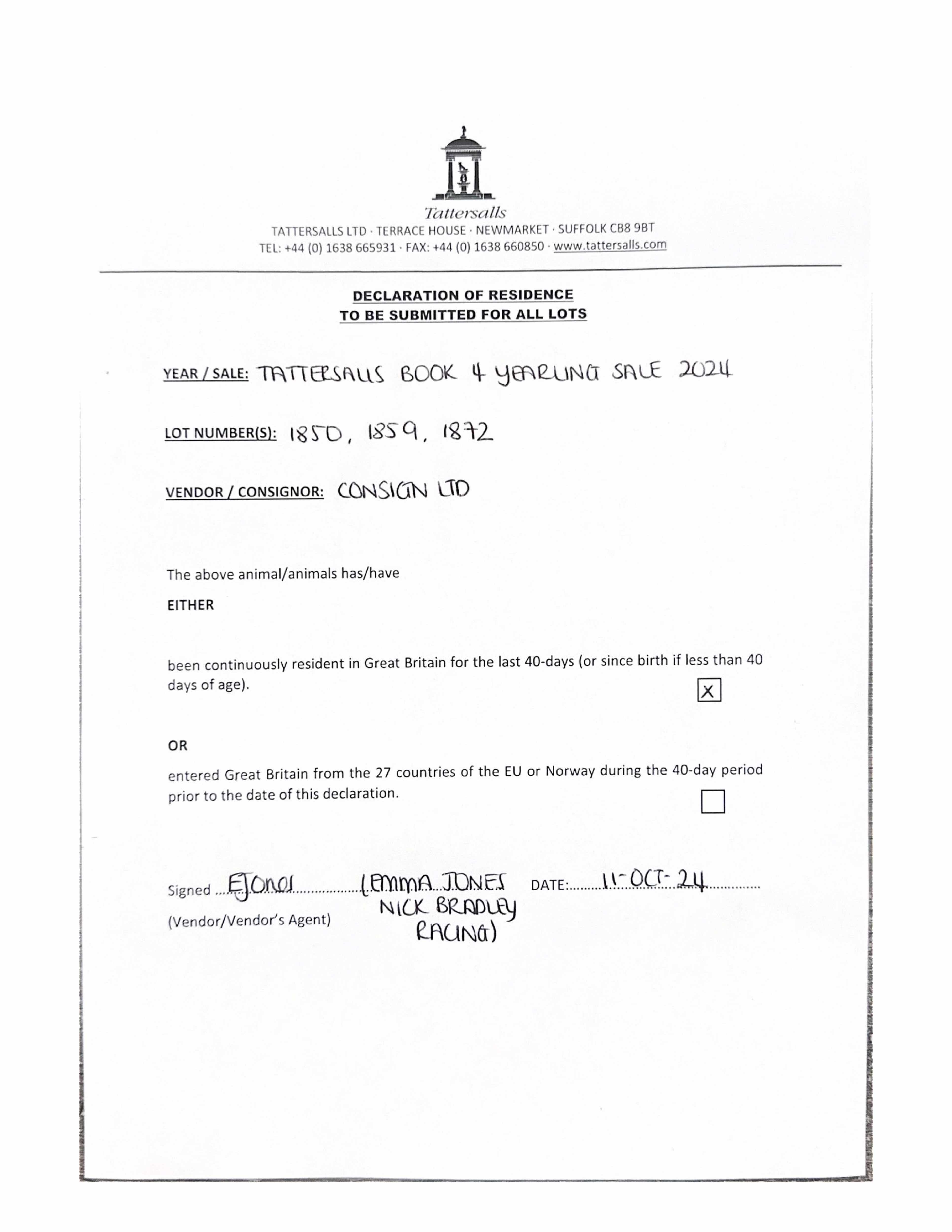 Lot 1850 Land Force (IRE) /Megans Approach (GB) B.C. (GB)