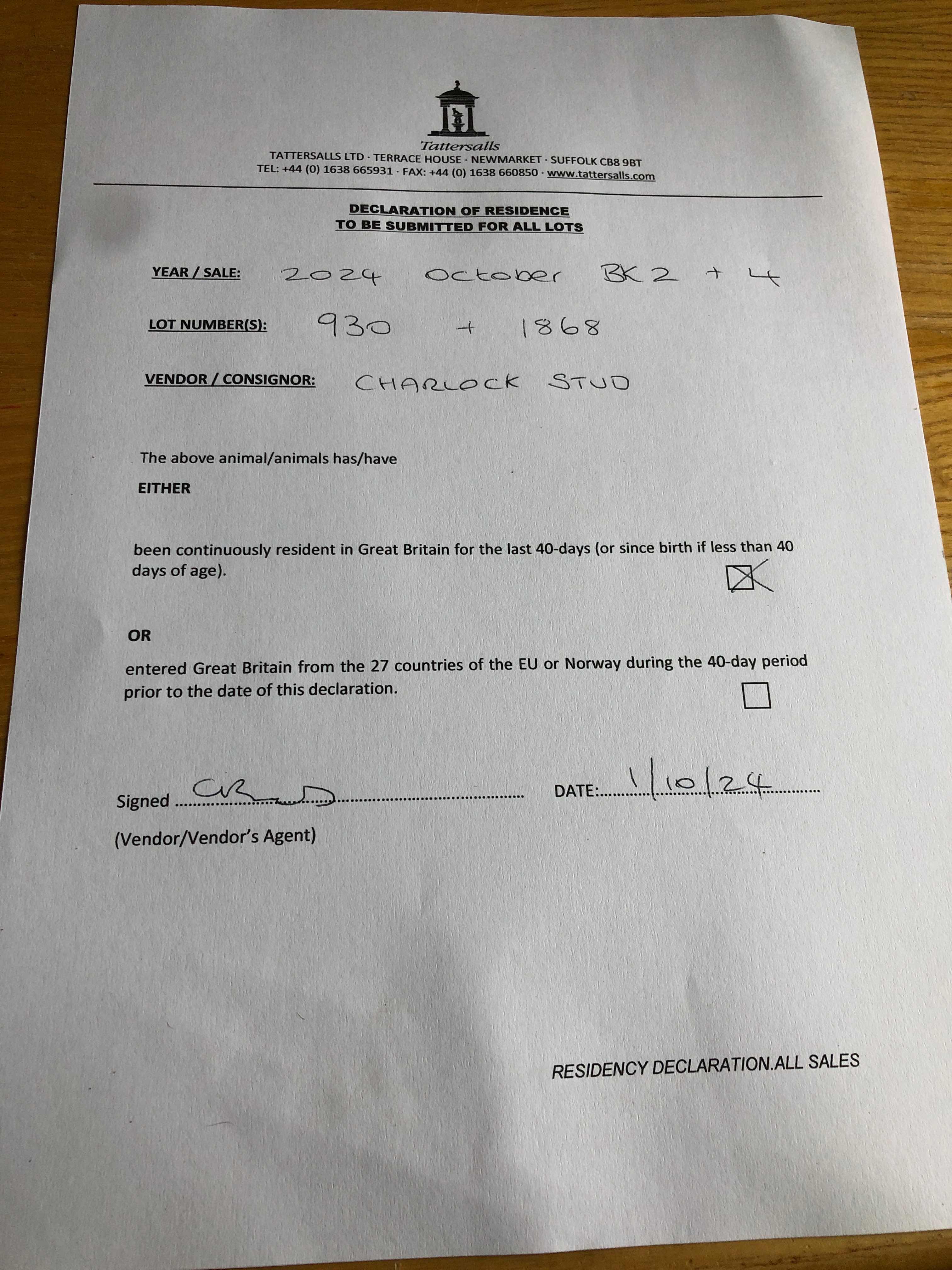 Autumn Horses In Training Sale 2025 lot 1460, Jamie Railton (Agent)=>Al Zaeem Stud 30,000 gns