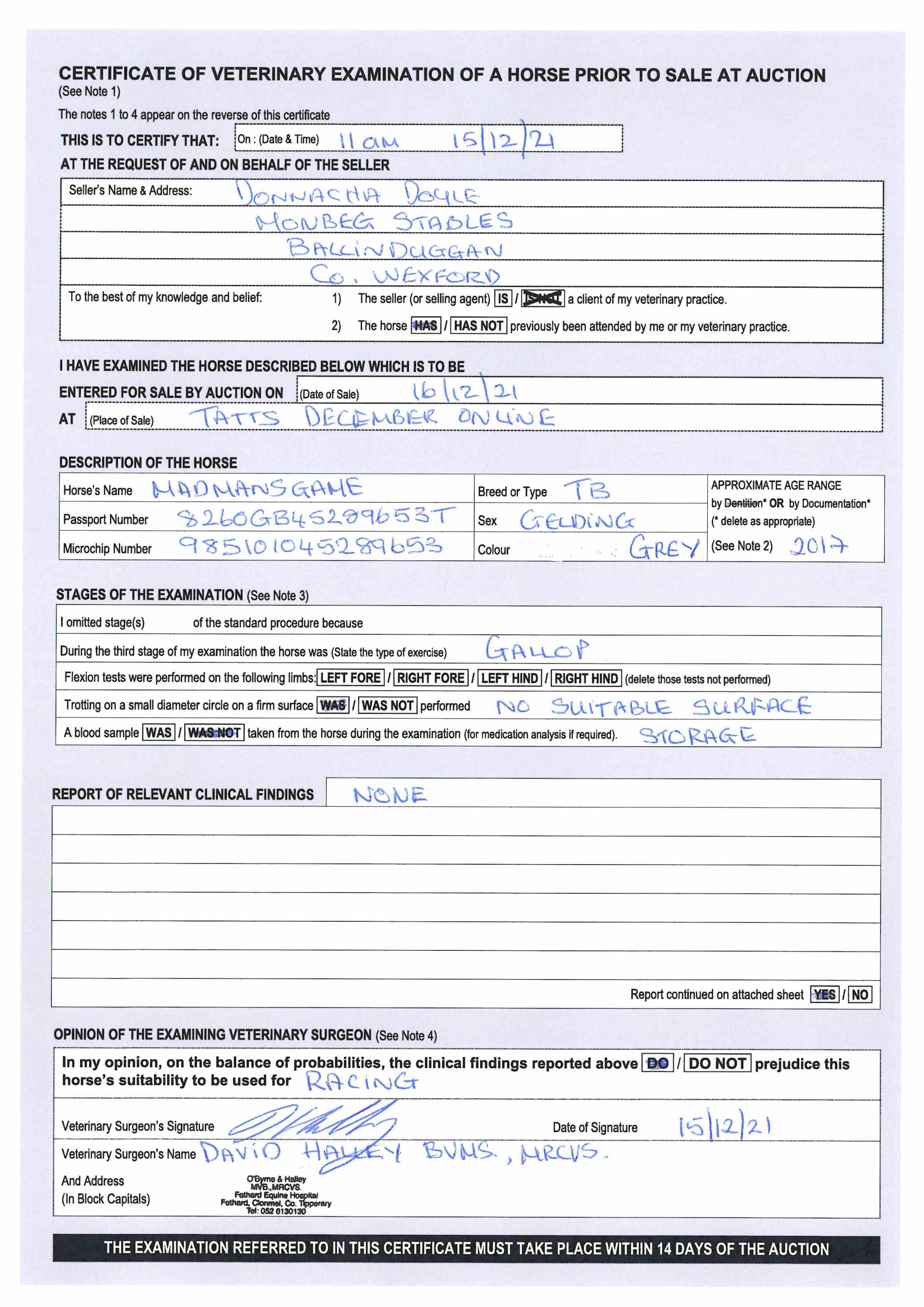 For time sensitive requests please call Tattersalls on +44(0)1638665931